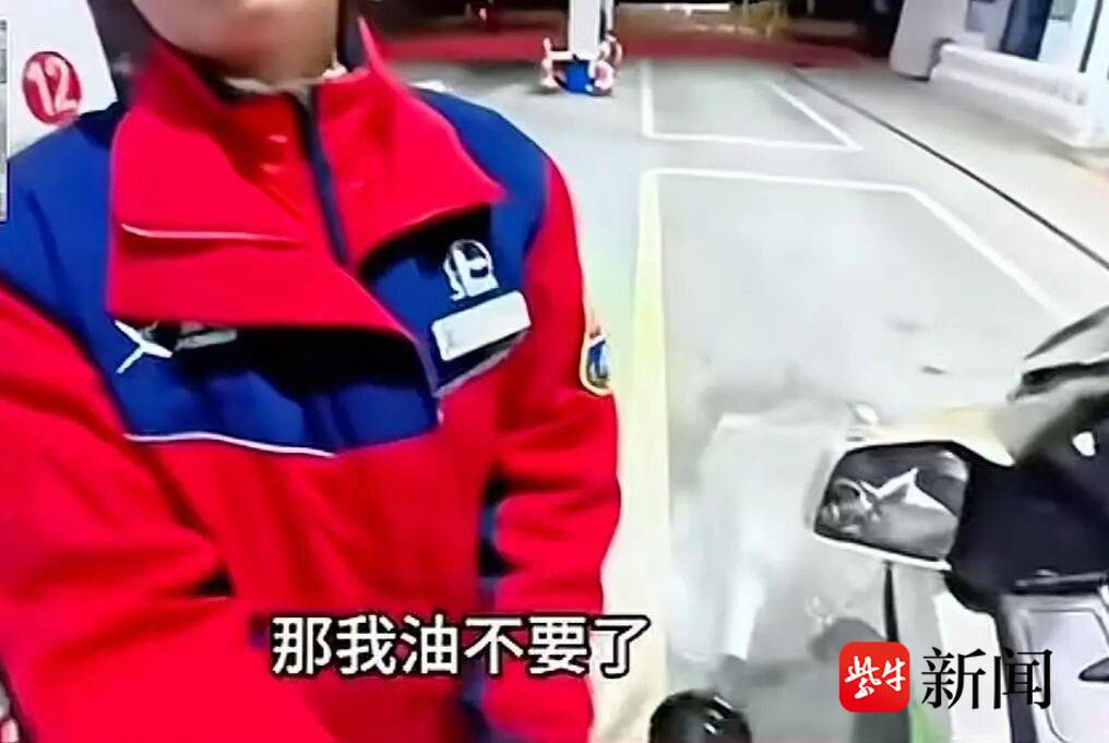 记者从视频中可以看到,该男子称“我就加一点”,工作人员说:“不可以。你想让我丢工作吗?不是一点的问题,你没有报备,我不敢呀。”男子表示自己只加一点,“下个高速就行了,就加5块钱的”。工作人员说:“我跟你说了,你跟公安局打个电话报备一下。”双方拿着油枪僵持,最后男子称,“那我油不要了”,于是把油喷到了地上。