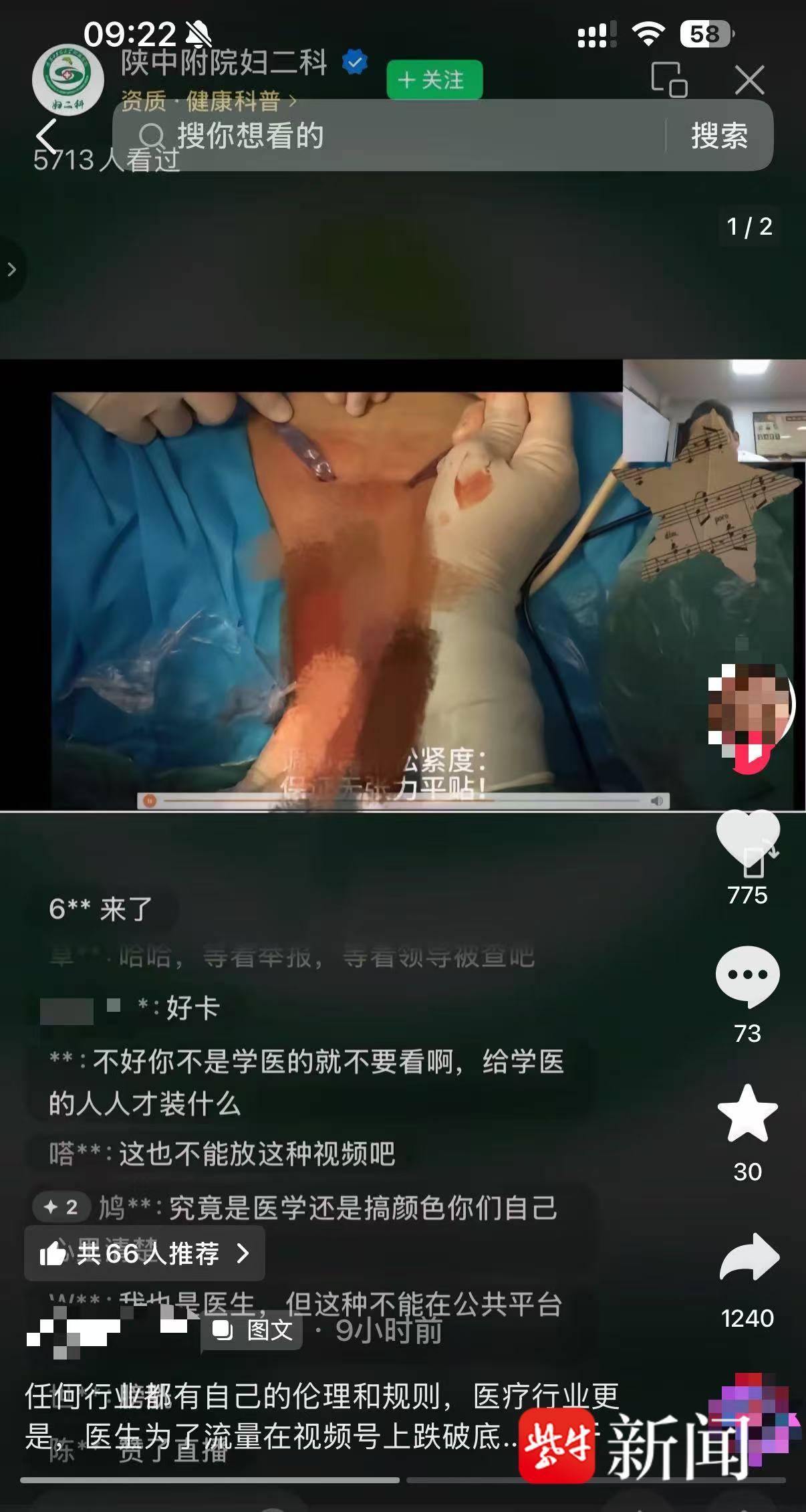 经核查,我院妇二科每周一开展例行教学培训,培训对象为妇产专业医务人员。2026年2月2日(周一)18时在其科室微信视频号进行直播教学,教学内容为压力性尿失禁(SUI)手术治疗及并发症处理,教学期间展示了手术操作PPT并间断播放“经尿道中段无张力悬吊术”教学视频约4分钟。该教学视频中出现女性患者局部隐私部位,无可识别个人身份信息。教学过程中授课人员发现网友异常评论后立即中断直播。