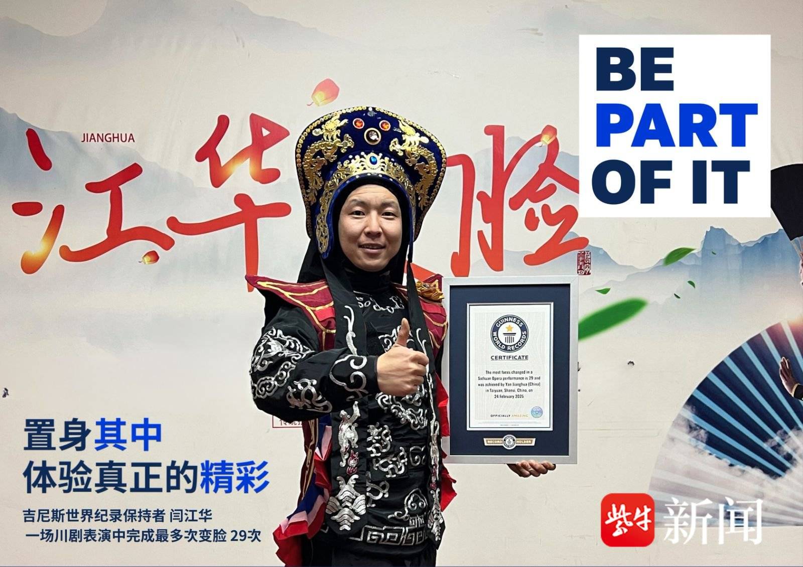 扬子晚报网2月10日讯(记者 姜天圣)近日,33 岁的山西籍川剧变脸演员闫江华,凭借连续完成 29 次脸谱变化的精湛表演,成功获得吉尼斯世界纪录认证,成为 “一场川剧表演中完成最多次变脸” 纪录保持者。这项突破让川剧变脸这一中国传统戏曲绝技,以标准化、专业化的姿态进入国际传播视野。
