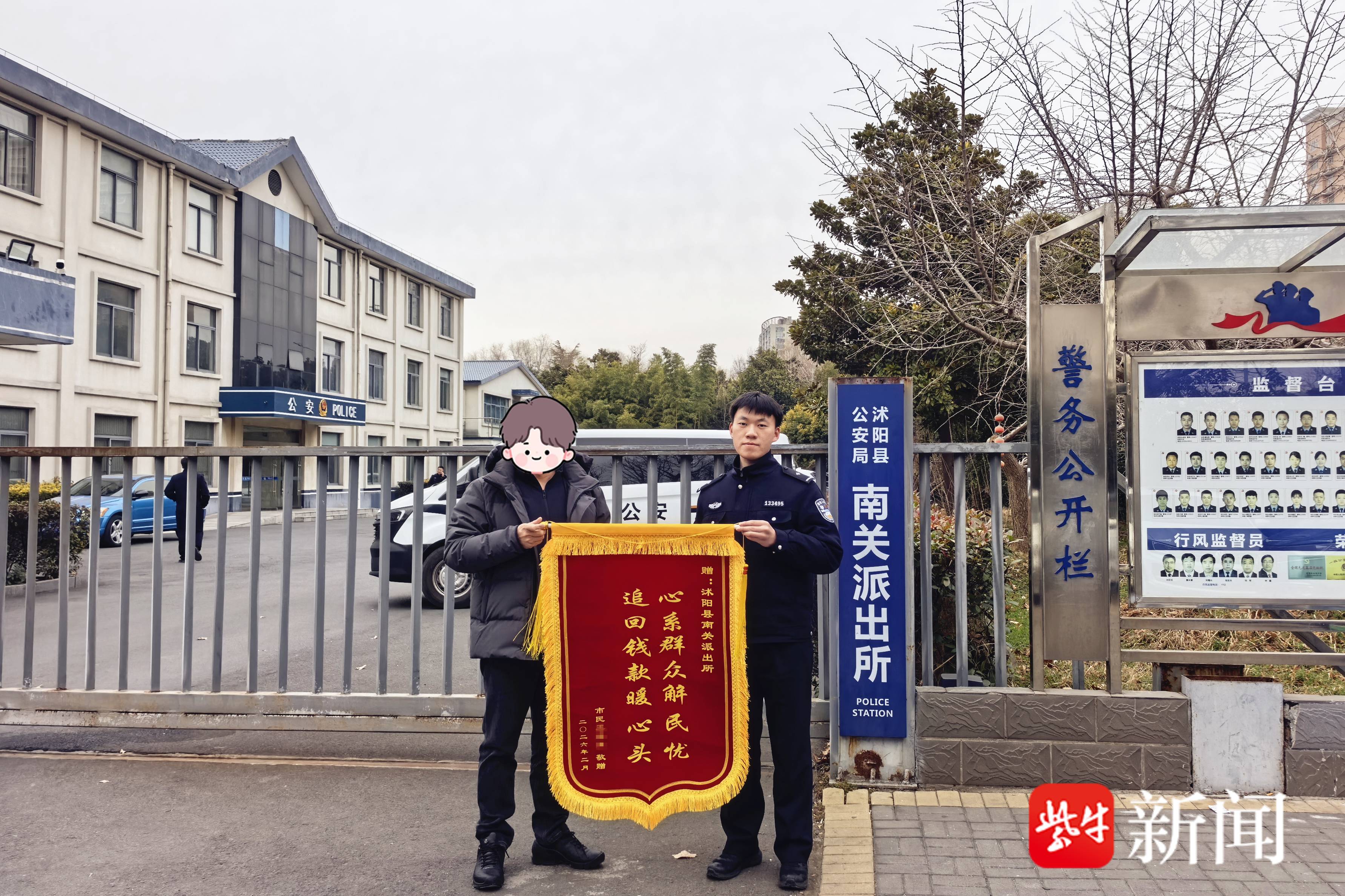 扬子晚报网2月10日讯(通讯员 毛雯雯 记者 高峰)“真是太感谢你们了,要是这40万块钱追不回来,我真不知道该怎么办!”2月9日下午,王先生来到沭阳县公安局南关派出所,将一面印有“心系群众解民忧 追回钱款暖心头”的锦旗送至民警严明辉手中,言语间满是感激之情。
