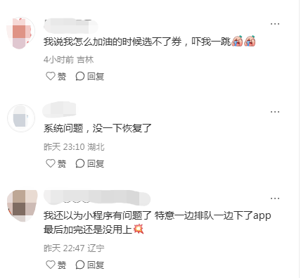 扬子晚报/紫牛新闻记者搜索发现,不止是江苏境内的中石化加油站出现这种情况,上海、安徽等地也是如此。“油价大涨,中石化的一键加油系统也坏了,优惠券不能勾选,这还是当初我买养车卡的满减加油钱,后天券就过期了,但油箱刚才也加满了。”一名上海车主发帖吐槽说,自己在APP上进行投诉,好不容易排队轮到了,对方直接点了关闭,自己再选择人工客服,结果发现前面还有99位。“我还奇怪呢,明明有一张券,到了加油站就是勾选不了,看到后面排长队,只好付钱走了!”一名车主在该帖子下留言。还有车主留言称,可能是是系统瘫痪吧,同事说早上可以用,下午有段时间就不行,直接不出券,然后到晚上10点左右又可以用了。