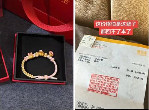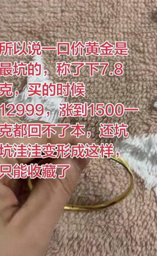 此后几个月,黄金价格一路飙升,至2025年3月,该店里的金价超过了1500元/克。即使这样,陈女士那只镯子还无法回本,当初那次大意的下单,让她后悔不已。
