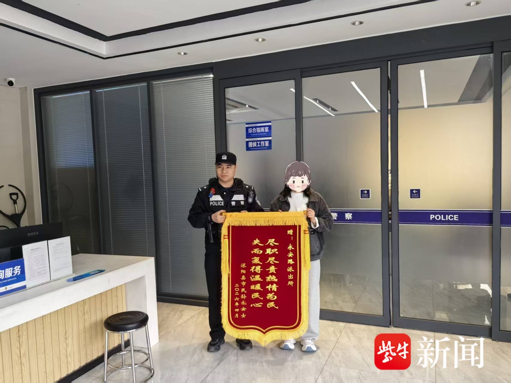 4月2日,孙女士专程来到永安路派出所,向民警赠送锦旗,以此衷心感谢民警支大伟、刘路阳高效务实、细致入微的履职坚守。