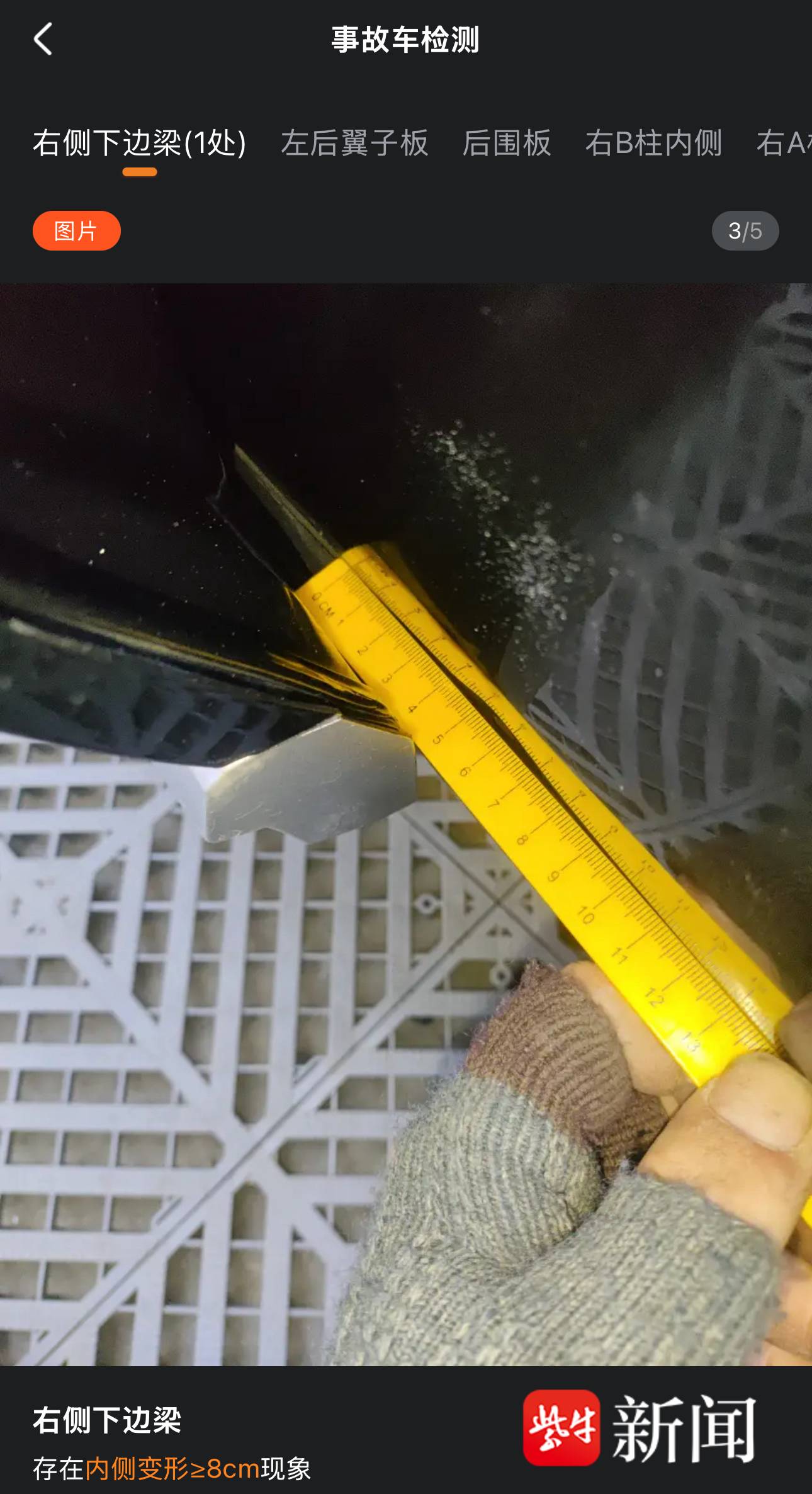 第三方检测报告显示,车下边梁存在变形