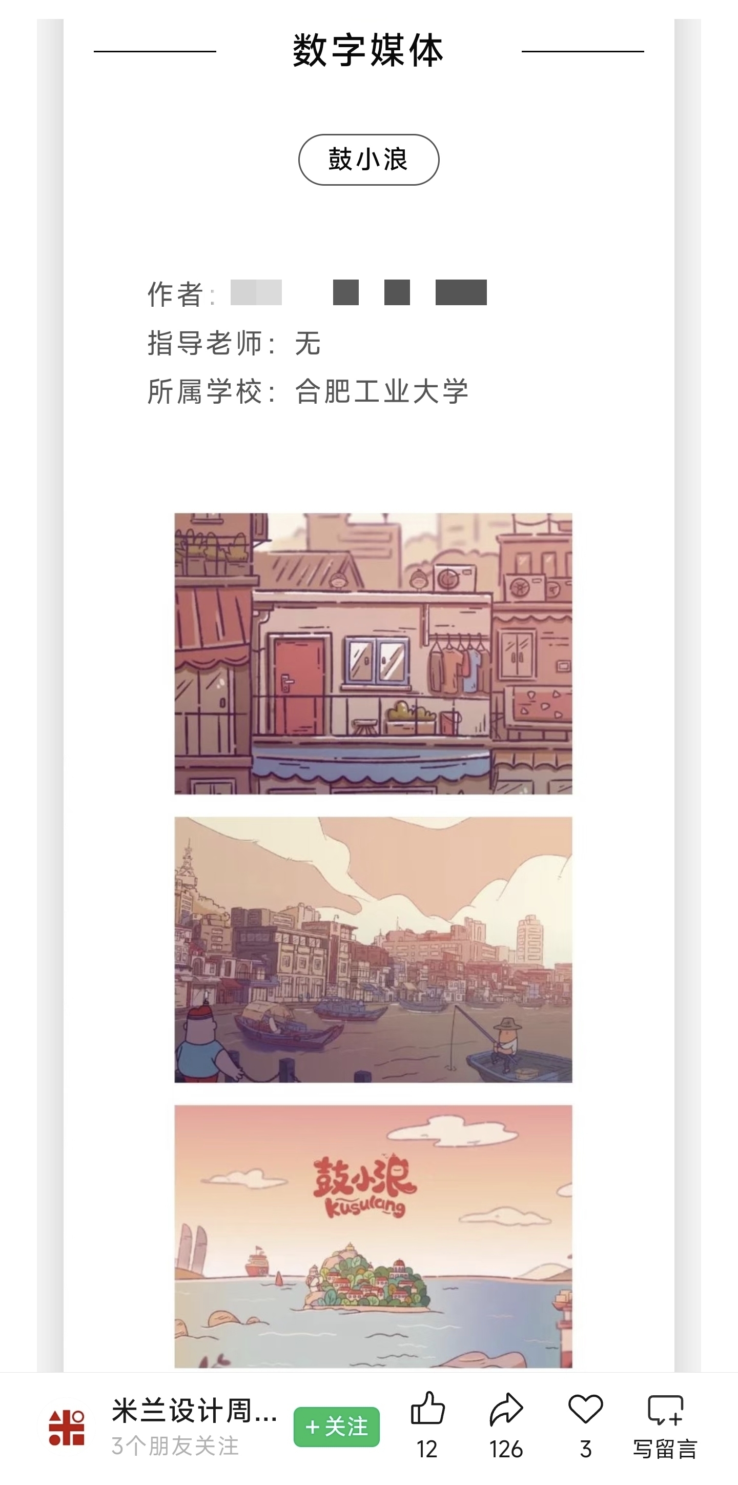 小李社媒发布的截图显示,合肥工业大学建筑与艺术学院曾在2025年7月30日在微信公众号发布了一条《学院学子在第九届米兰设计周——中国高校设计学科师生优秀作品展中荣获佳绩》的推文,推文截图的一等奖作品中出现了《鼓小浪》,但记者于4月30日查询时,发现该推文已删除。记者又联系了合肥工业大学宣传部,对方表示“正在核查此事,有结果会在官方渠道公布”。