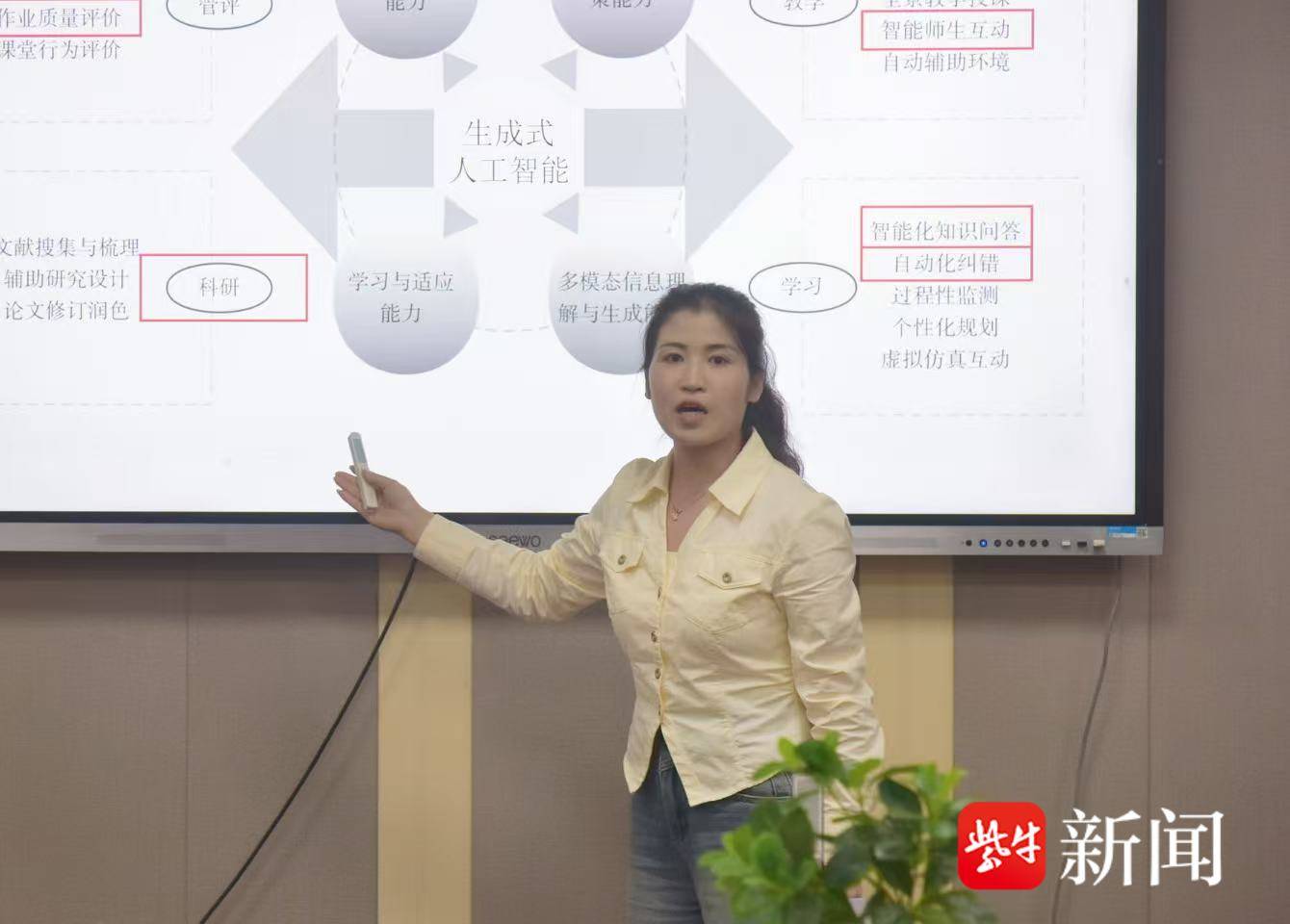 “数学课本上有这样一句话:通过本节课的学习,让学生用函数的观点来看待世界。这句话在以前的教学中可能是‘删除’,因为老师们无法把函数拓展到学生的生活中去。当我用这个问题去询问AI时,它讲了一些例子让我大为震惊:厨师烧饭的美味程度受什么影响?受食材的新鲜程度,厨师的厨艺等多元的影响,它也是一种对应关系。我从中受益匪浅。”