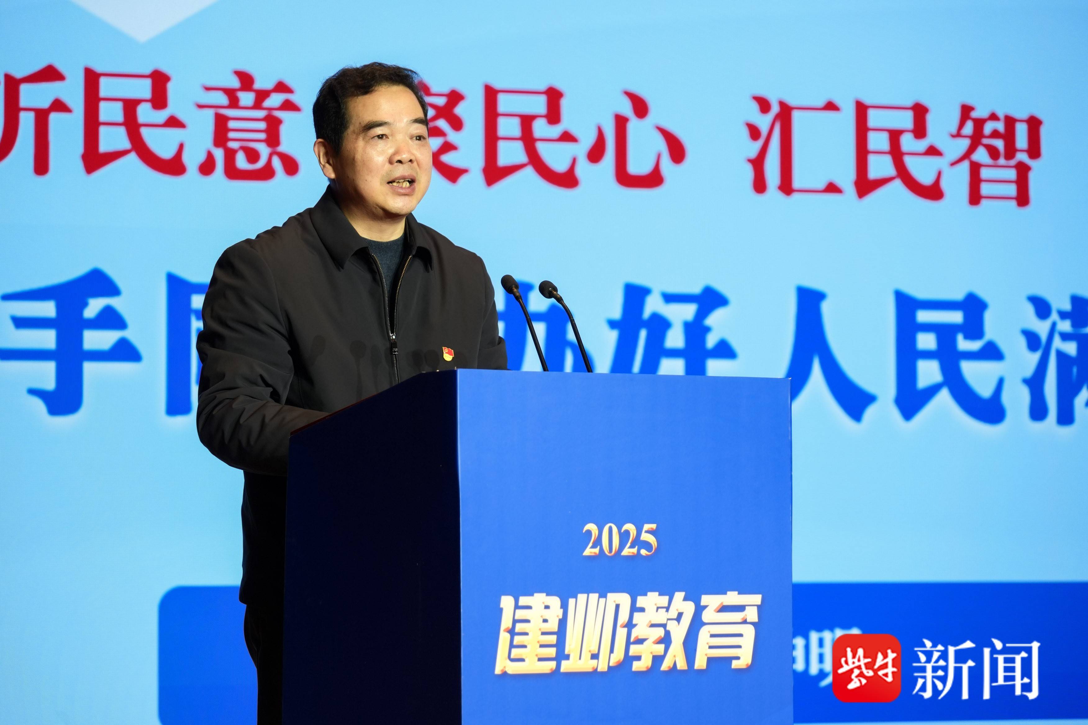 建邺区教育局党组书记吴坤明作《听民意 聚民心 汇民智 解民忧 携手同心办好人民满意的高品质教育》主题汇报,全面回顾2025年建邺教育的丰硕成果。吴坤明指出,2025年,全区教育系统在区委、区政府的正确领导下,聚焦高质量发展和教育内涵品质提升,聚力推进新校建设、深化综合改革等重点工作,携手同心办好教师幸福、学生快乐、家长满意、社会认可的高品质建邺教育。