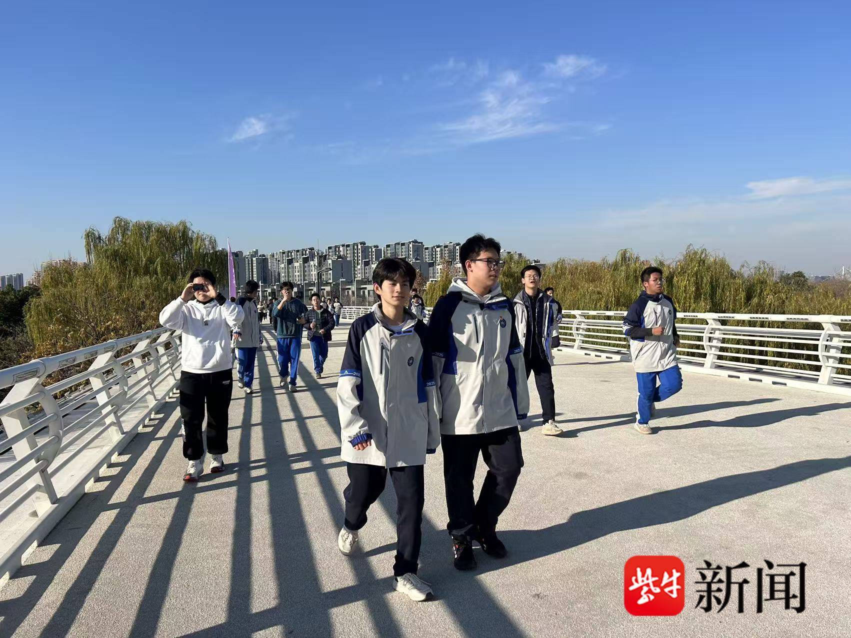 发令枪响,同学们冲出起跑线。冬日暖阳下,师生们从金陵中学江心洲校区出发,途经青奥森林公园、南京眼步行桥,抵达南京国际青年文化公园折返点后原路返回,全程约10公里。浩浩荡荡的奔跑队伍成为冬日江畔一道跃动的风景线。