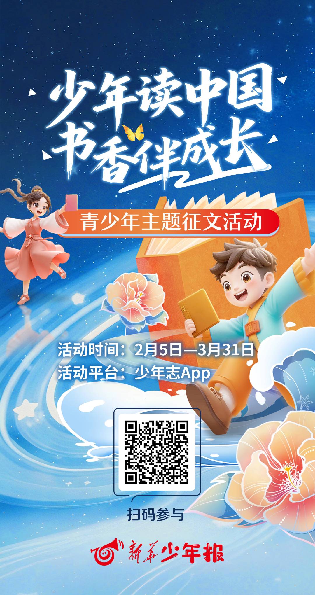 据悉,2026年3月31日前,全省中小学生均可扫描文中二维码参与活动投稿,学校集体投稿可发送至邮箱:shaonianzhi2024@163.com。优秀作品将有机会在《扬子晚报》《新华少年报》等权威媒体刊登展示,获奖作者代表还将受邀参加线下阅读与媒体交流会。欢迎广大青少年踊跃参与!