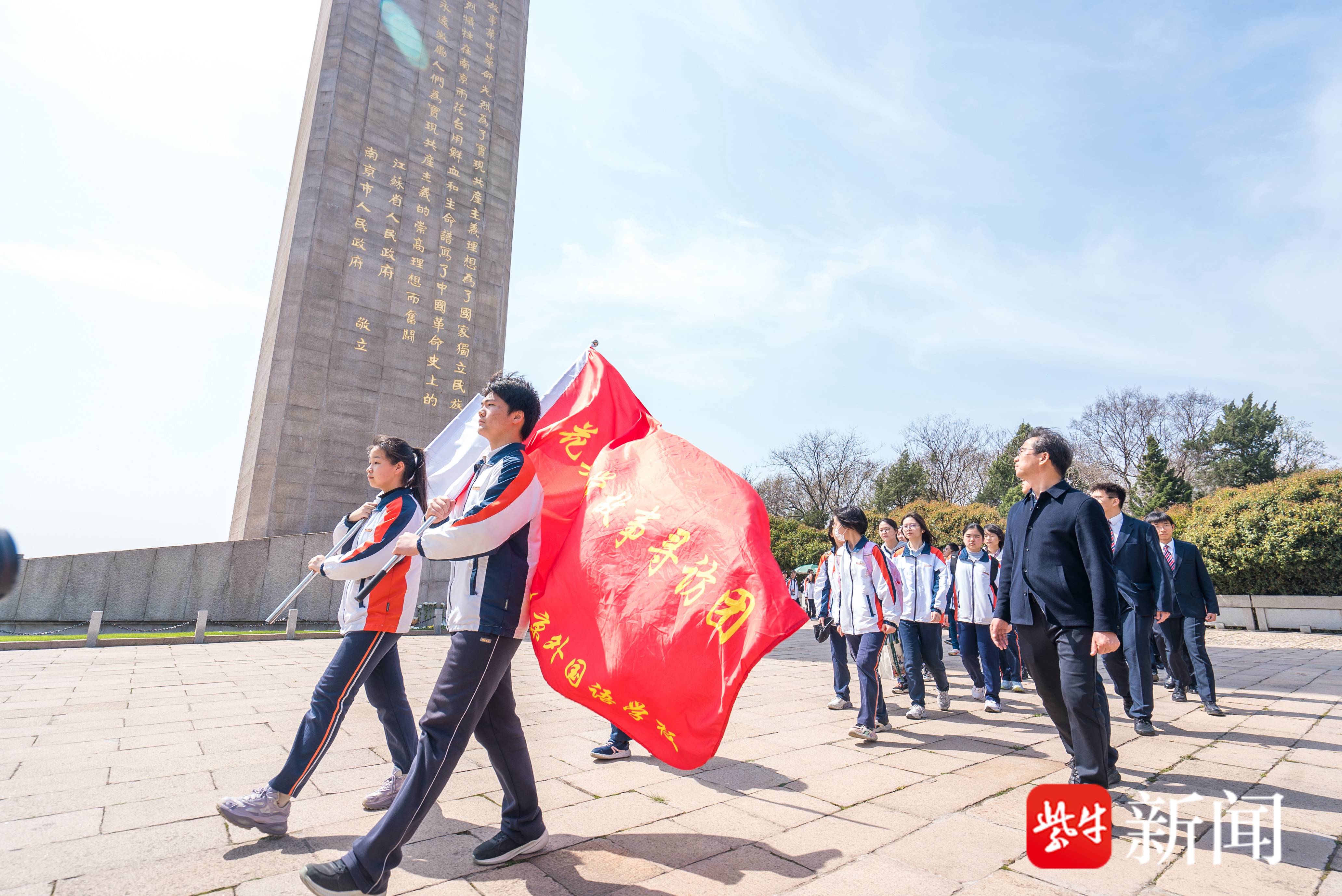 3月28日,南京外国语学校高一年级500余名师生从南部新城校区出发,徒步7.27公里前往雨花台烈士陵园缅怀英烈。此次活动也是“雨花英烈求学故事”进校园系列活动的首站。