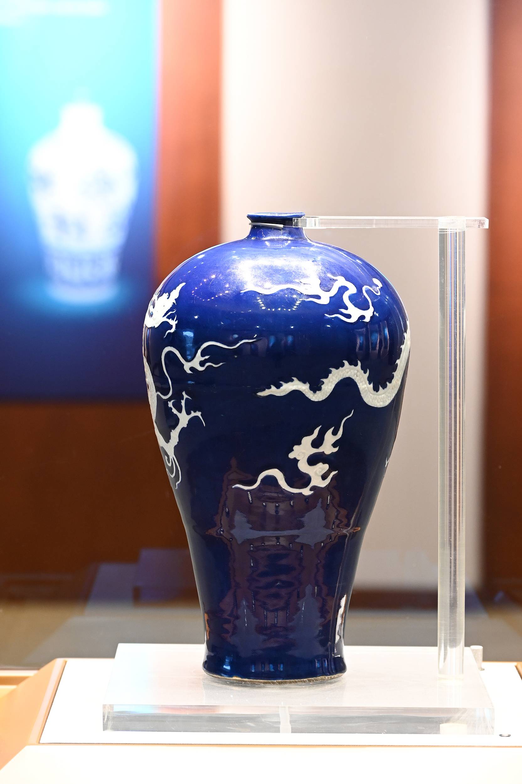 “玻璃柜里,它像一口安静的海。”沈子馨这样描述自己第一眼看到梅瓶时的感受。“深到近乎黑的霁蓝,收住了周围的喧哗;一条白龙破水而出,鳞光在蓝海之间翻卷。”沈子馨表示,元代的霁蓝烧造极难,温度差之毫厘,蓝就会浑浊。可偏偏在这种难处里,白龙跃起。她联想到扬州与大运河的关系——大运河在元代被全面疏浚,扬州正处于河道拐弯处,“像一个转身的舞者”。