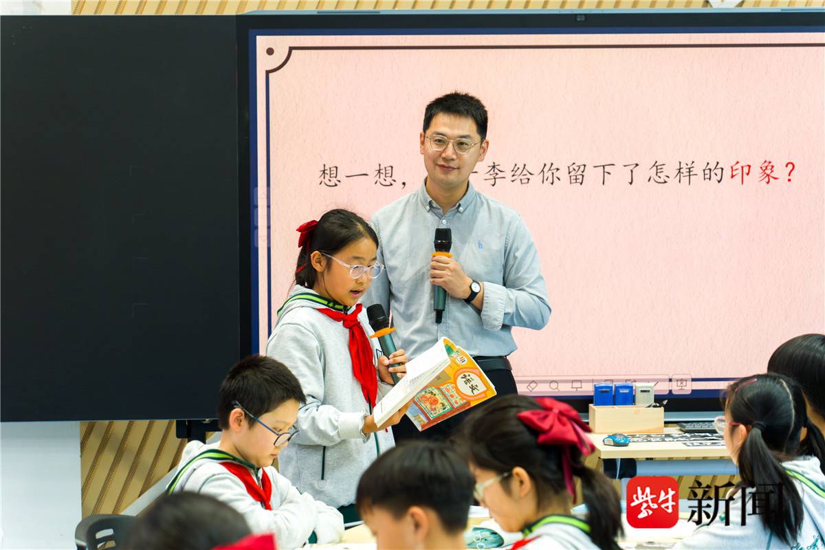 南师附中新城小学江腾飞老师带来五年级语文课《刷子李》。课堂伊始,学生们踊跃勾勒人物印象——“刷浆必穿一身黑,干完活没有一个白点”“身上有白点,白刷不要钱”。江老师顺势引导:“我们写人常写五官、身材,冯骥才为何只写一件黑衣服?”从外貌、动作到侧面描写,学生们在多感官体验中读懂了一个鲜活的“刷子李”。课堂结尾,江老师引用《人民日报》金句:“把简单的事情做到极致,就是不简单;把平凡的事情做到极致,就能成就非凡。”