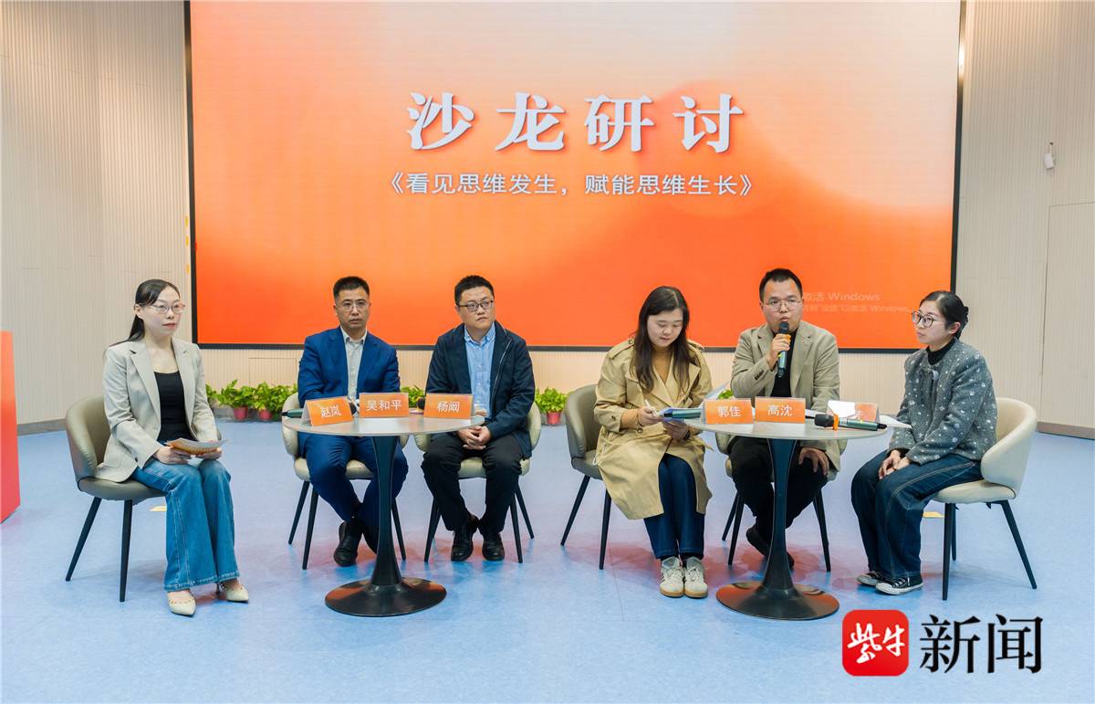 《看见思维发生,赋能思维成长》主题沙龙环节由南师附中新城小学副校长赵岚主持,高淳区小学劳动教研员吴和平、南京市西善桥中心小学副校长杨阚、南京市南湖第一小学副校长郭佳、南京市莫愁湖小学教导主任高沈、南师附中新城小学语文教研组长方芳等六位嘉宾,结合刚刚呈现的六节观摩课,围绕课堂中思维如何发现、教师如何赋能学生思维成长、在AI伴学的现在如何彰显学生的主体性等话题展开深度对话。不同学校、不同学科、不同视角的碰撞,既有理念的交锋,更有实践的共鸣。