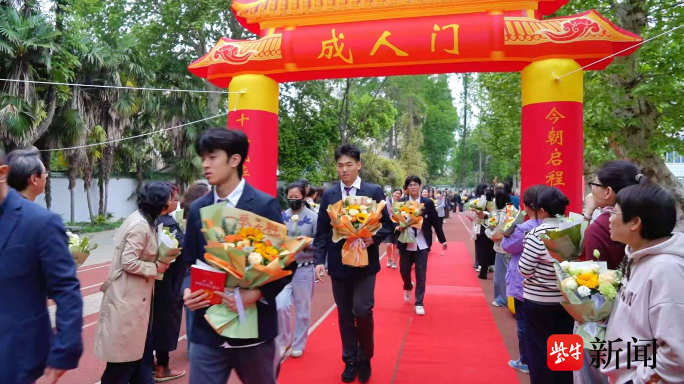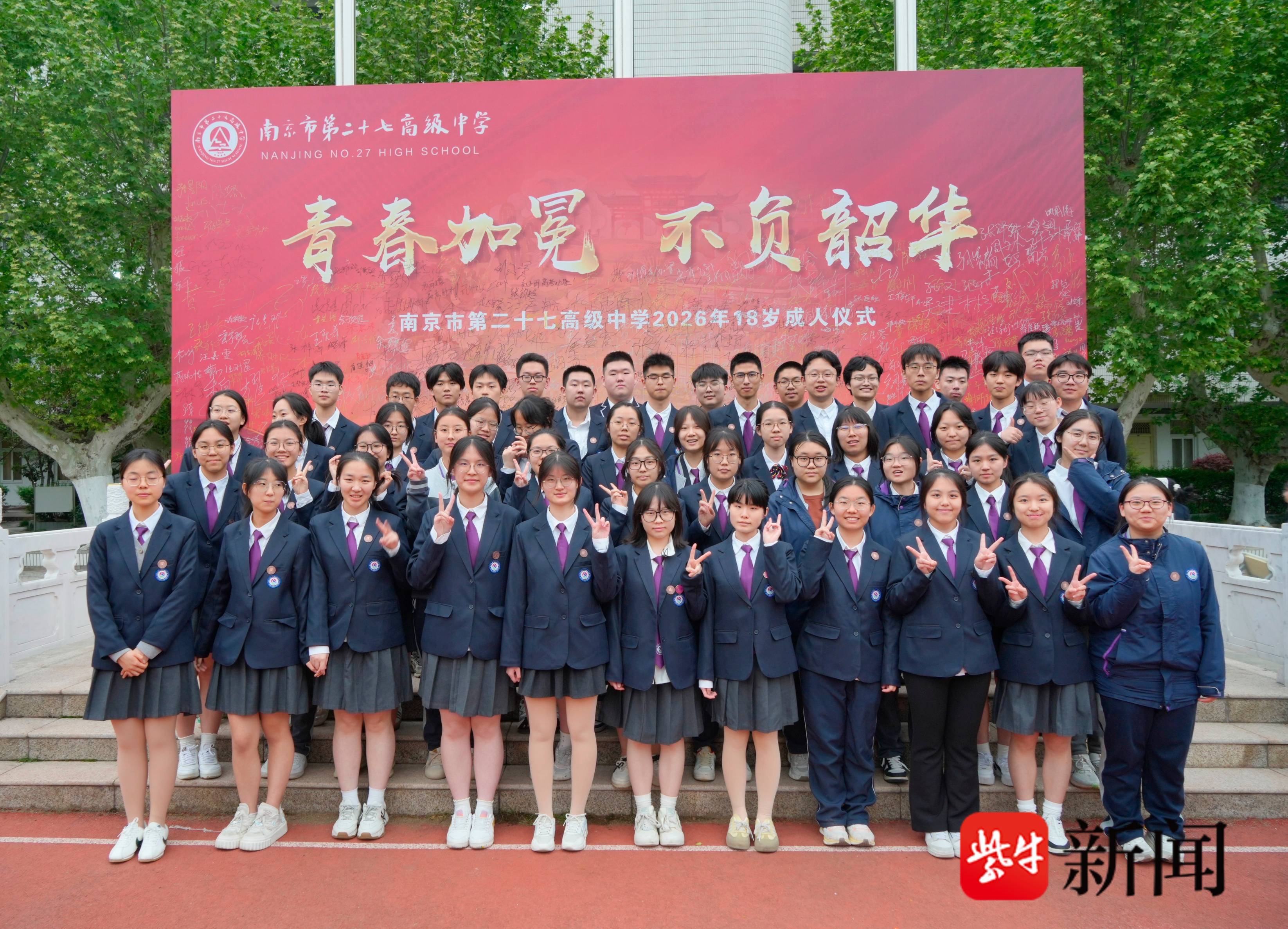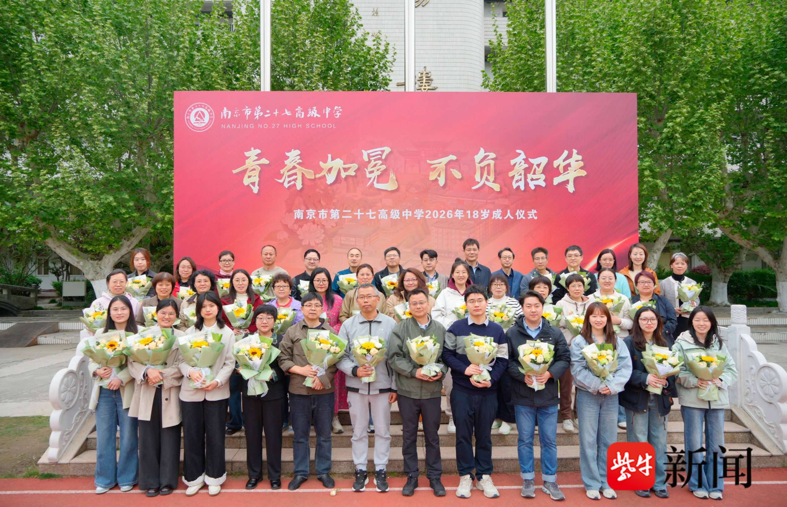 4月16日下午,南京市第二十七高级中学“青春加冕,不负韶华”2026届高三学生成人仪式举行。蹦床奥运冠军陆春龙为学生送上寄语,高三全体师生、家长齐聚一堂,共同见证同学们迈向人生崭新阶段。