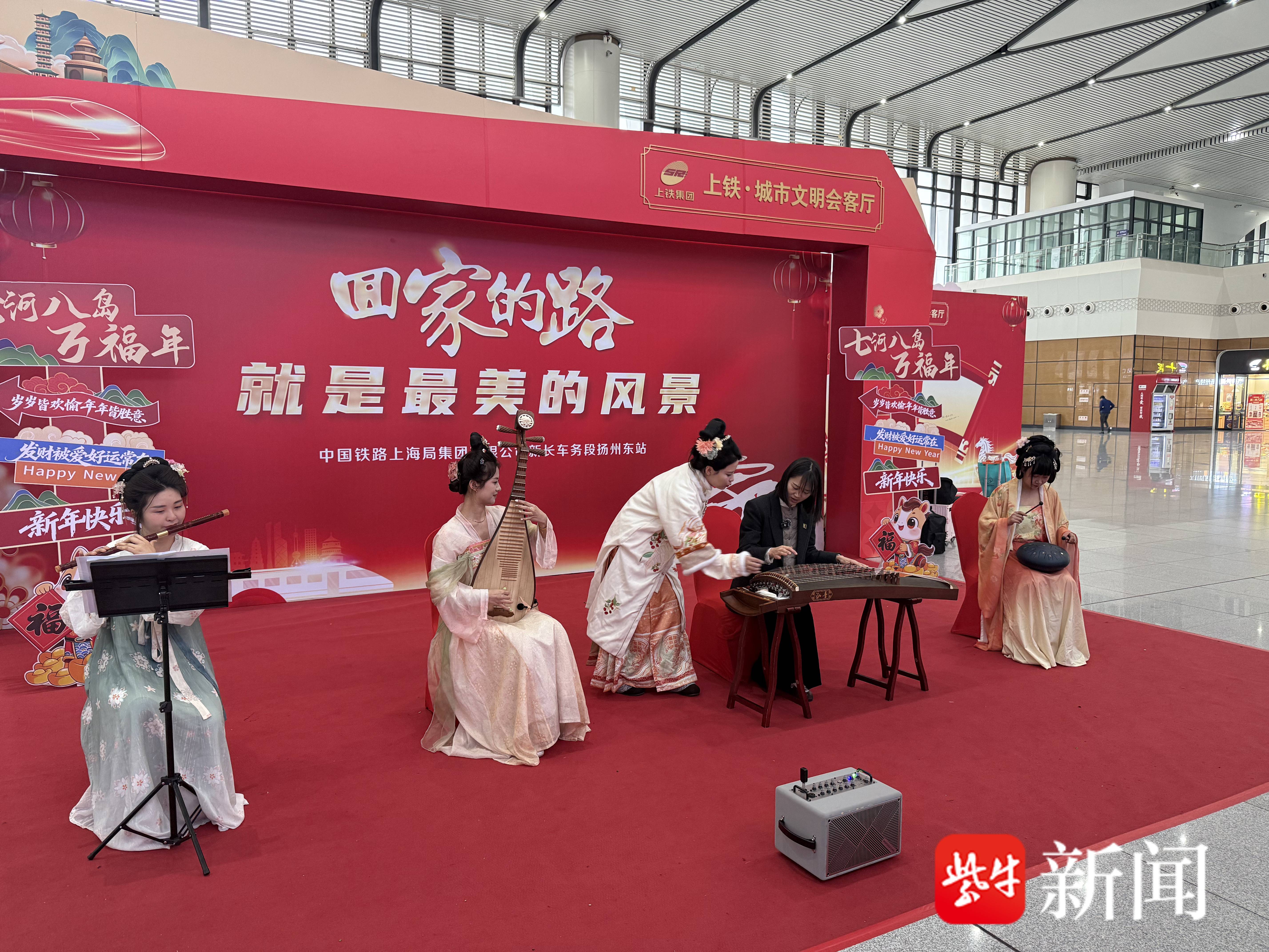 为应对返程高峰、提升旅客出行体验,铁路部门在加强运输组织的同时,多措并举温暖旅客旅途。各大车站精心策划了一系列融合地方特色与传统文化的互动活动。扬州东站精心打造“上铁·城市文明会客厅”,邀请非遗传承人现场展示精湛技艺,配合婉转的民乐演奏,将传统文化底蕴浸润在候车空间的每一个角落。