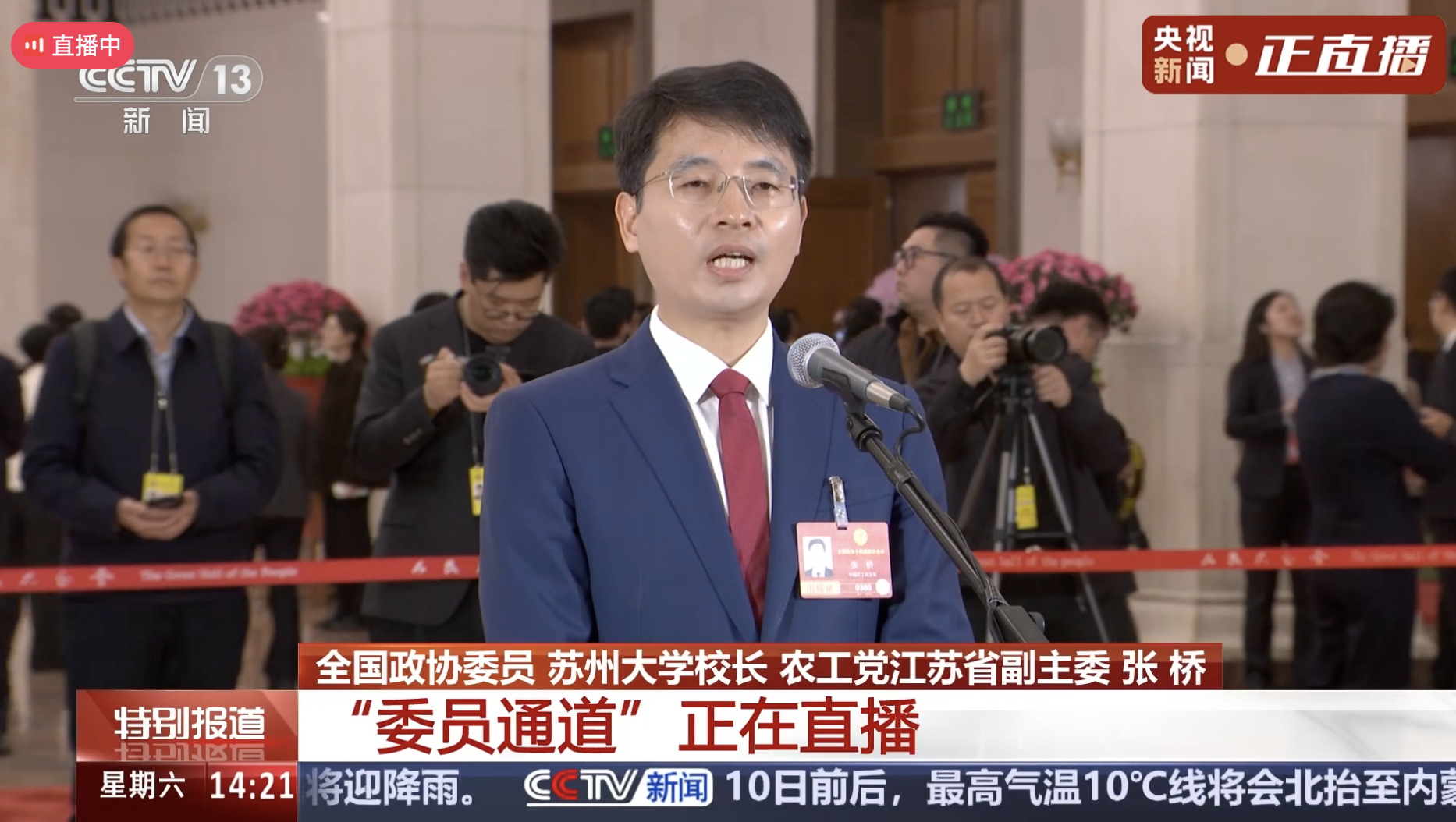 苏大校长张桥“委员通道”接受采访 高校要做“创新源”,更要成为“发动机”