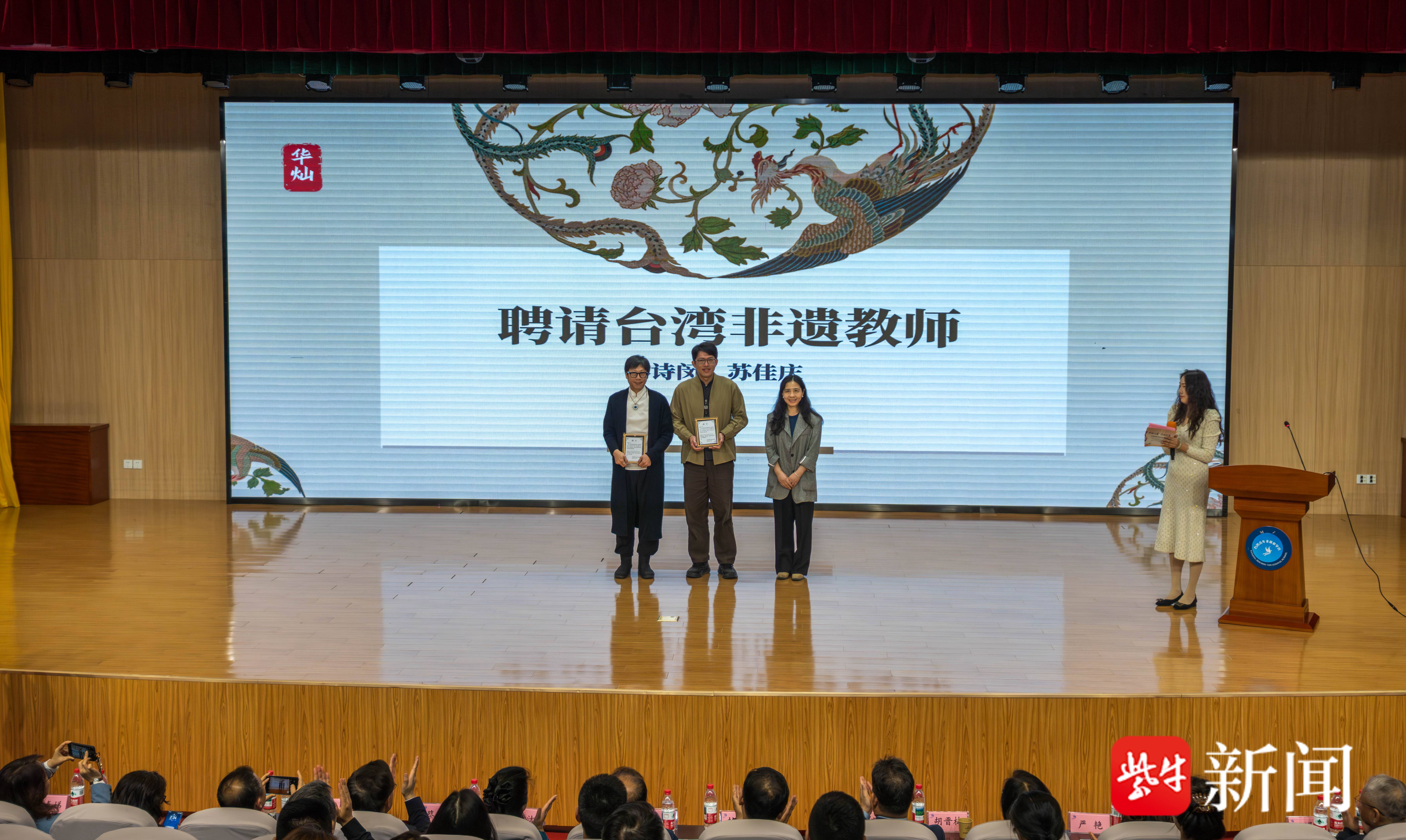 开营仪式现场,程永波、林敏洁分别致辞,勉励台湾青年在研习非遗中感悟文化魅力,让非遗成为连接两岸血脉的纽带。江苏省非遗传承人谢坤芳现场演绎金陵琴派古琴艺术,指尖流转间尽展古琴非遗技艺的深厚底蕴与独特魅力。南京非物质文化遗产专业学院为特聘台湾非遗教师林诗闵、苏佳庆颁发聘书,苏佳庆在现场表示,未来将在台湾成立青年非遗发展协会,以实际行动助力中华优秀传统文化的传承与传播。