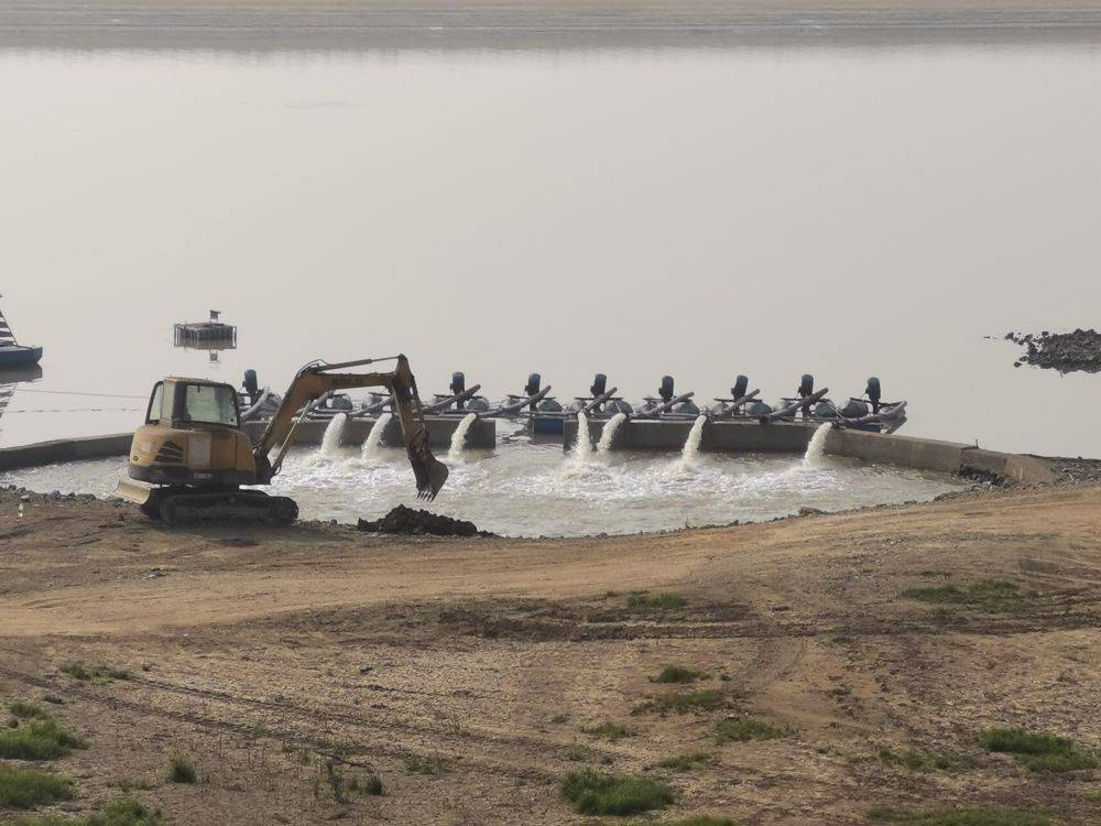 在位于鄱阳湖畔的江西省都昌县观湖水厂,十台抽水泵开足马力,从外湖抽水至取水口附近。都昌润泉供水有限公司生产运行部部长王春华说,针对当前枯水形势,他们从9日开始架设抽水泵进行提水,加大对饮用水源地巡查力度和水质检测频率,保障城区和周边乡镇16万人口的饮用水安全。