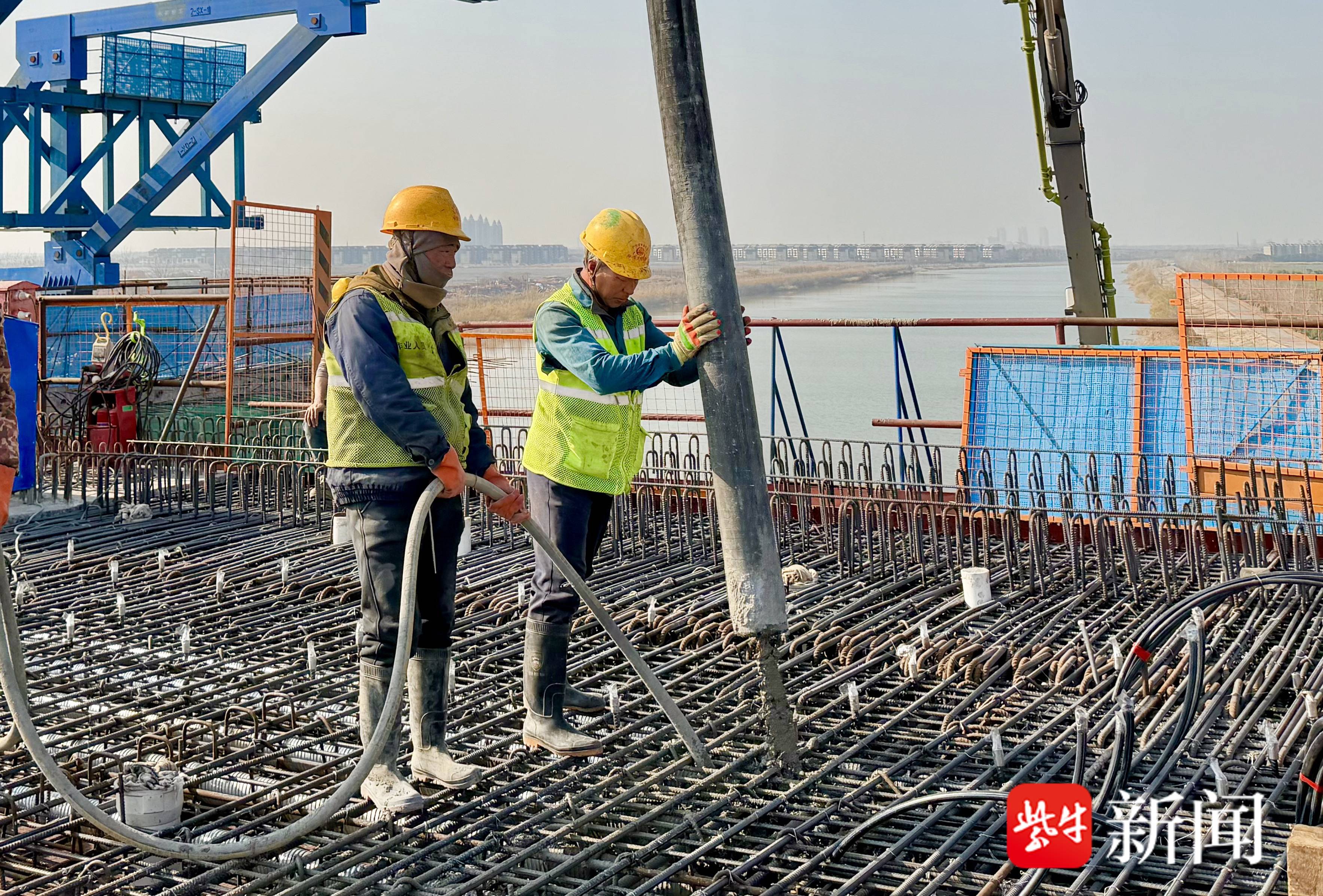 12月19日17时40分,由中铁大桥局承建的北沿江高铁崇启公铁长江大桥南引桥城际铁路最后一个块段混凝土浇筑完成。