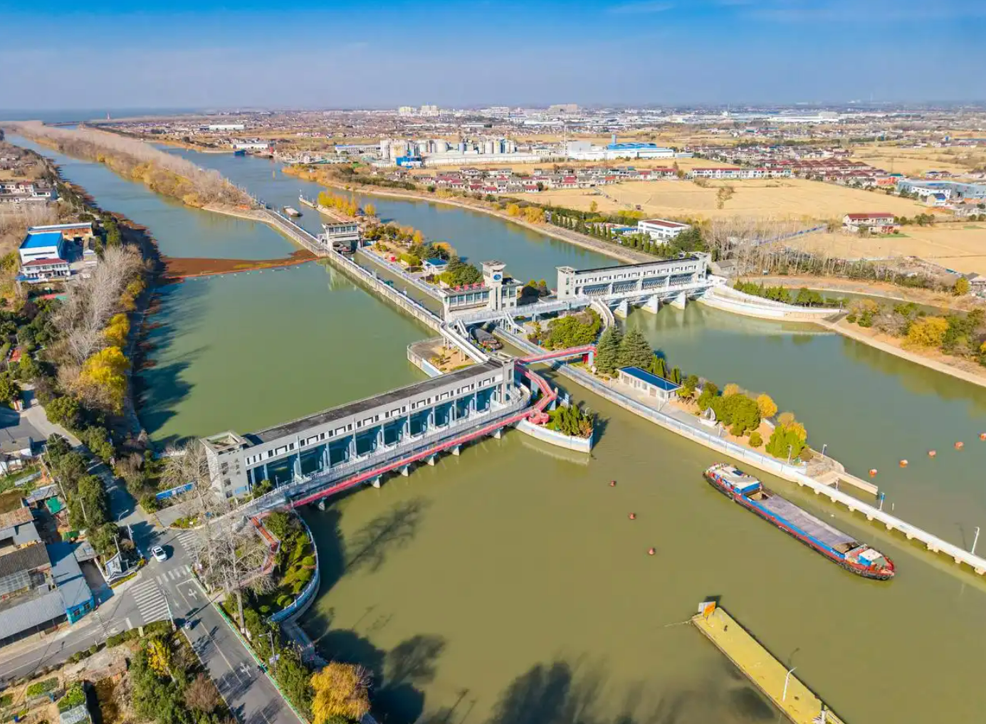 12月21日在江苏省扬州市江都区拍摄的南水北调东线一期工程运盐闸、邵仙套闸、邵仙闸洞(无人机照片)。
