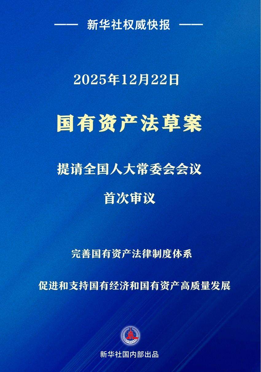 国有资产法草案12月22日提请十四届全国人大常委会第十九次会议首次审议。制定基础性、综合性的国有资产法,完善国有资产法律制度体系,对于在法治轨道上提升国有资产治理效能意义重大。