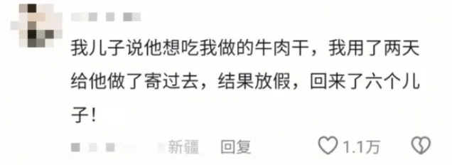 “给儿子寄了自己做的牛肉干,结果放假回来了六个儿子……”