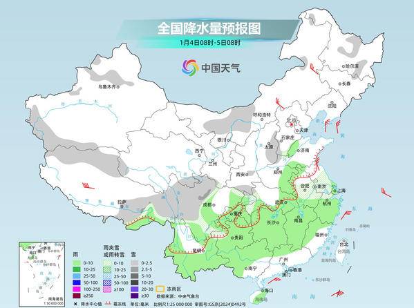 中国天气网讯 今天(1月4日)是元旦假期后首个工作日,降雪天气将明显减少,但长江中下游等地仍有大范围降雨,明天起全国大部转为晴多雨少的格局。同时,未来一周影响我国的冷空气依然活跃,但实力不强,西南地区湿冷感持续。