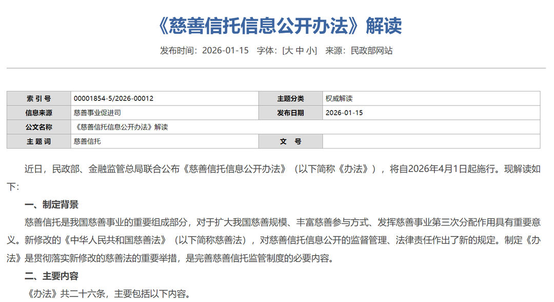 两部门发文规范慈善信托信息公开,自4月1日起施行 详情