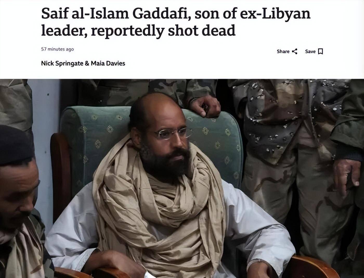 卡扎菲次子赛义夫,在其住处被暗杀