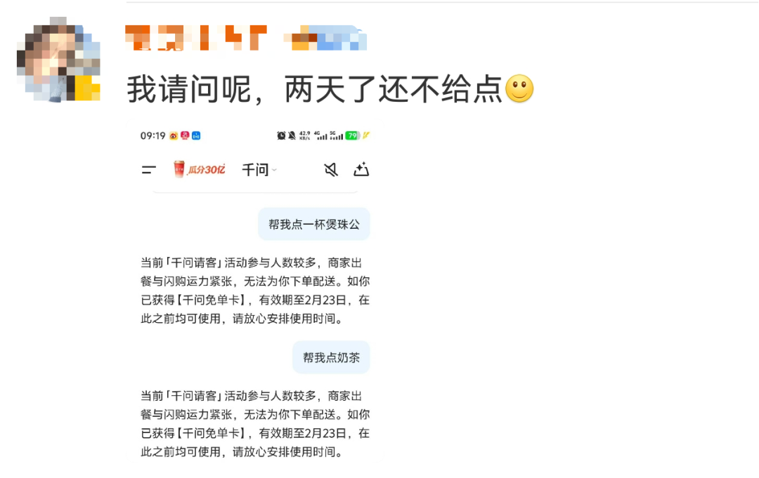 APP崩了!千问发文:求放过!网友:两天了还没能下单