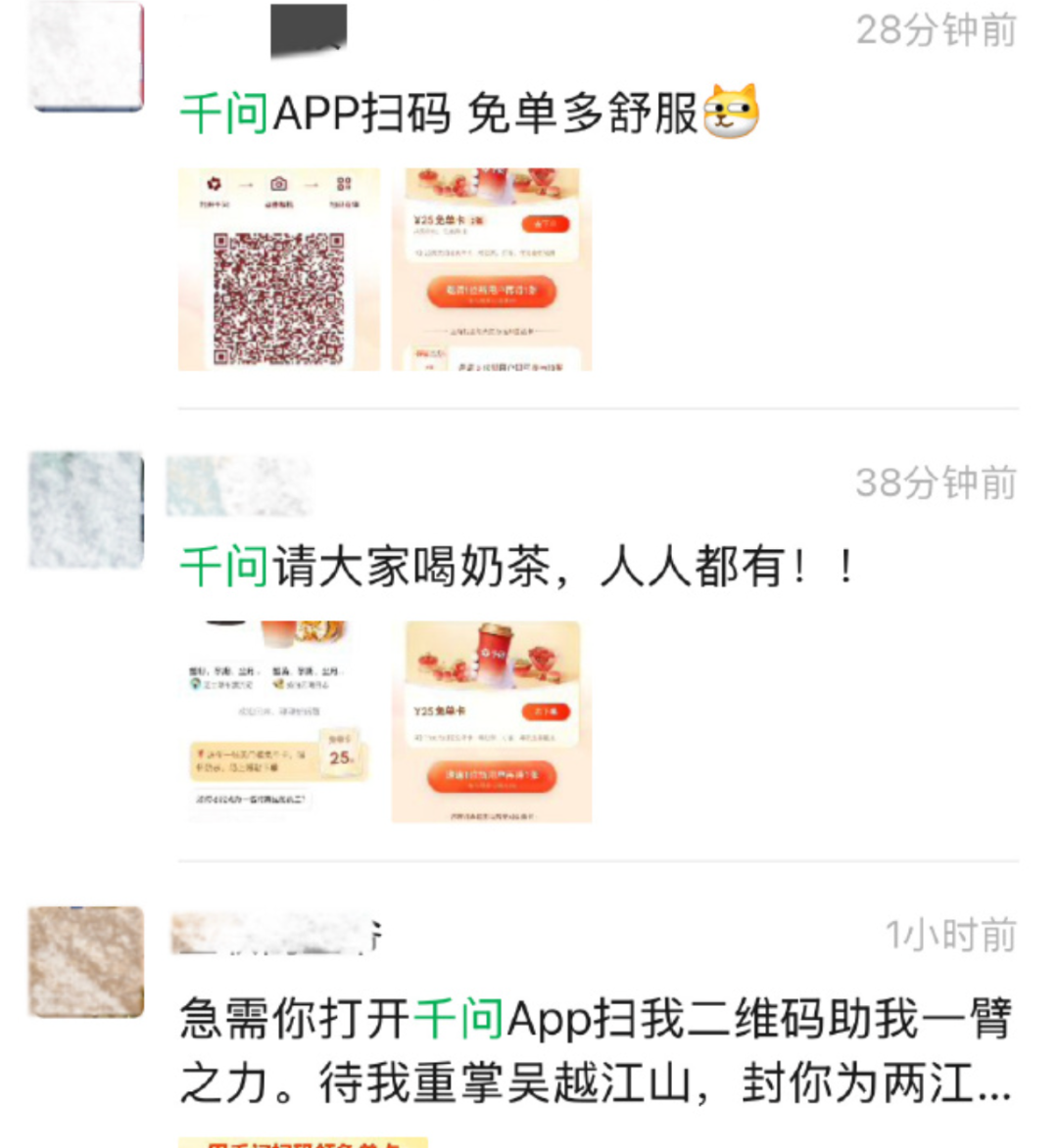 甚至还有人吐槽,朋友圈全是千问的二维码。