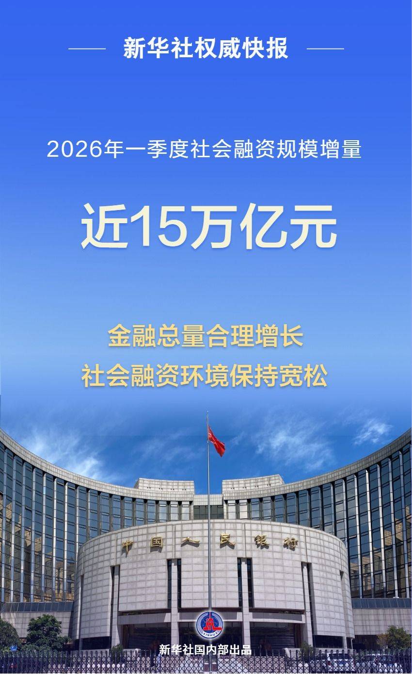 新华社权威快报|一季度我国社融规模增量近15万亿元