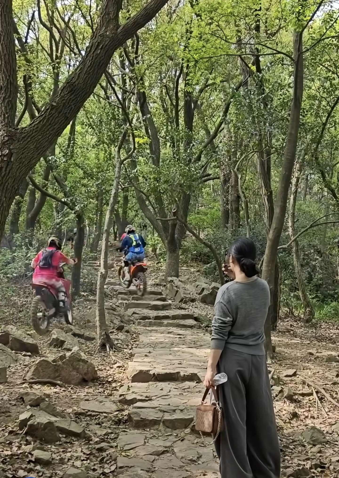近日,有网友在社交媒体发帖称,自己于4月10日在江苏省无锡市惠山国家森林公园爬山时,看到四辆无牌越野摩托车在行人登山的石阶上行驶。视频显示,这些摩托车先是从阶梯两旁的野山道中窜出,随即拐上游客行走的石板路。几辆车前后相随,一路向上冲去,引擎声轰鸣不断,最终消失在登山道远处。该网友表示:“头一回看到这样的事,我和别的路人都惊了!”