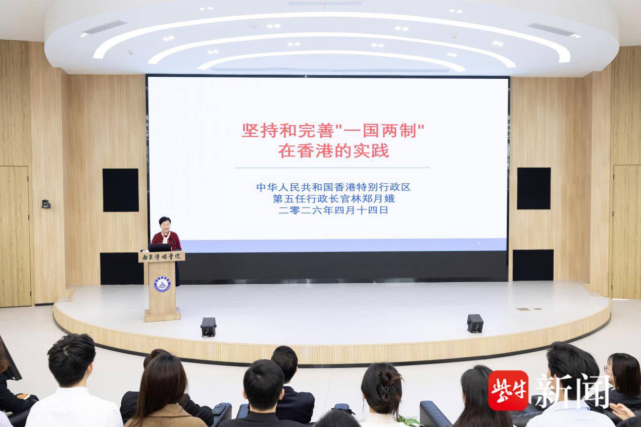 4月14日上午,香港特别行政区第五任行政长官林郑月娥女士来校访问,以“坚持和完善‘一国两制’在香港的实践”为主题作主旨演讲,与南传师生亲切交流。