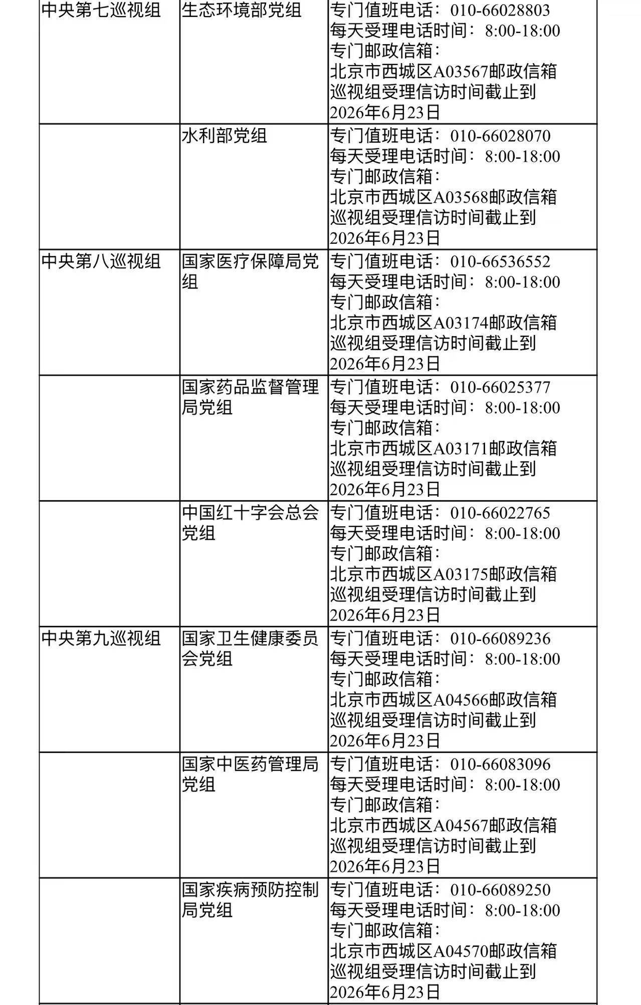 已进驻中央巡视组联络方式: