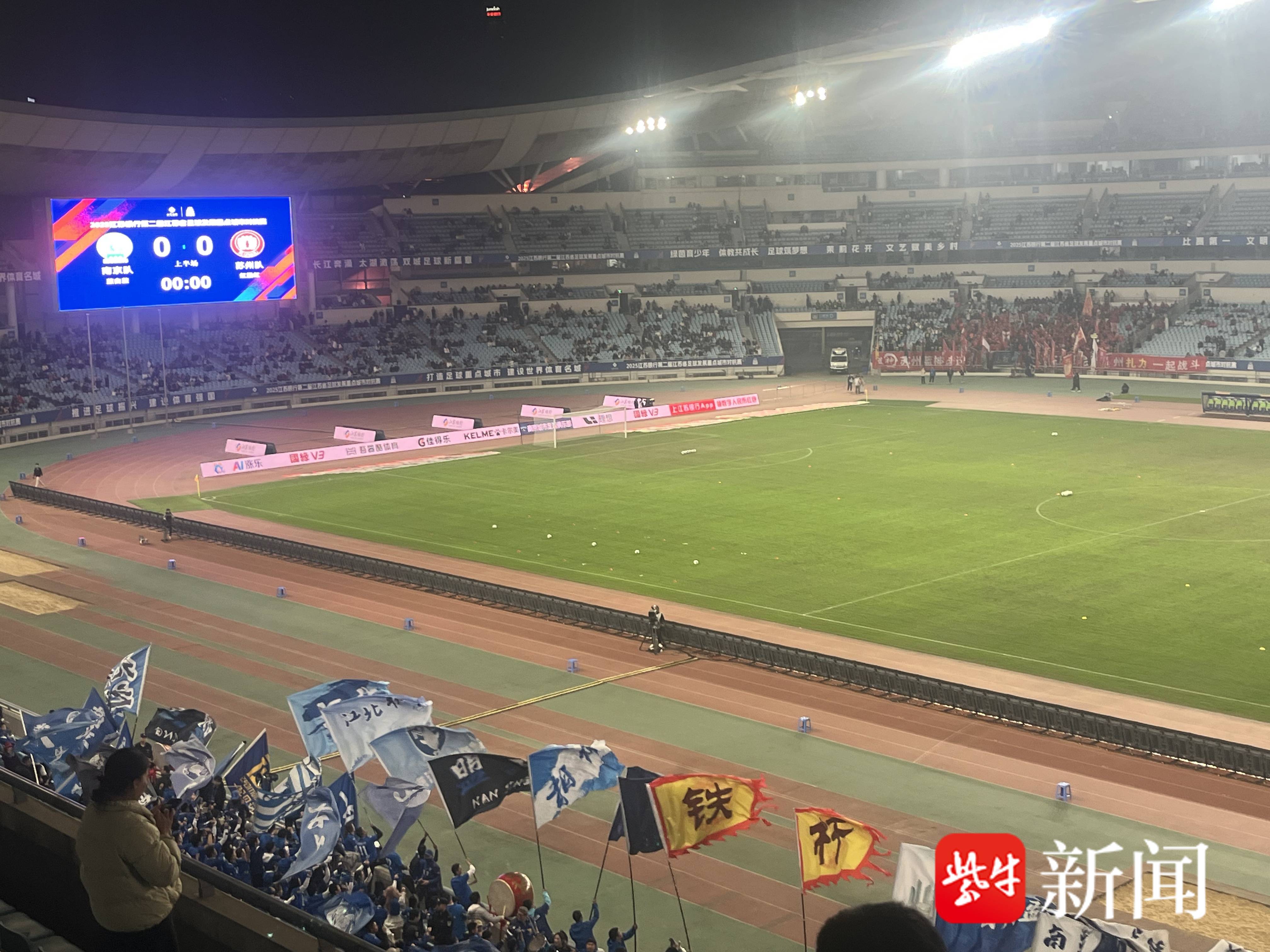 “苏大强”球迷该有的样子!南京苏州球迷隔场相望,南京球迷高唱“一日为蓝终身为蓝”!