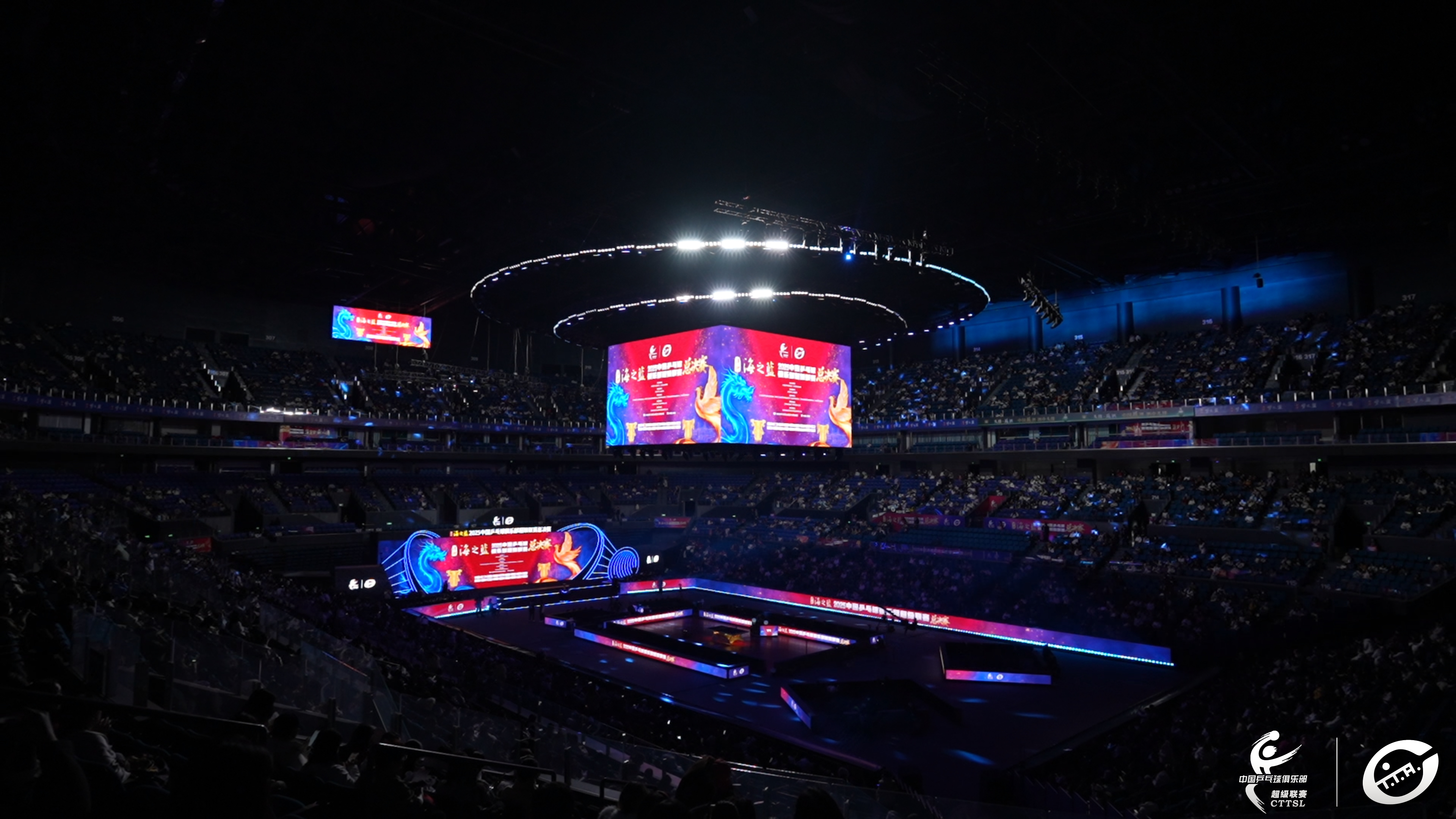 中央球台上方的四面高清大屏通透清晰,可实时捕捉选手挥拍、跑动的每一个细微动作;环绕环屏及场馆LED灯带随比赛节奏动态变换色彩,搭配专业声光电系统构建沉浸式观赛氛围。当选手打出精彩扣杀时,全场灯光聚焦球台,欢呼声与击球脆响交织共振,让每一位观众都能深度沉浸于国球魅力之中。