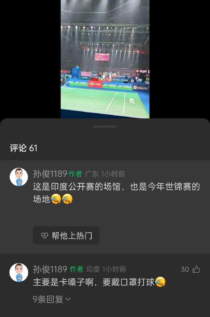 空气污染问题依旧严峻,中国羽毛球队孙俊教练更新社交平台,直接吐槽空气质量:“主要是卡嗓子啊,要戴口罩打球。”要知道,丹麦选手安东森就因新德里严重的空气污染连续第三年退出赛事,还因此被世界羽联处以5000美元罚款,如今污染问题未获改善,让运动员的参赛顾虑进一步加剧。此外,根据现场曝光的画面,可见猴子闯入观众席“观战”的奇葩场景,可见场馆内的卫生和管理存在疏漏。