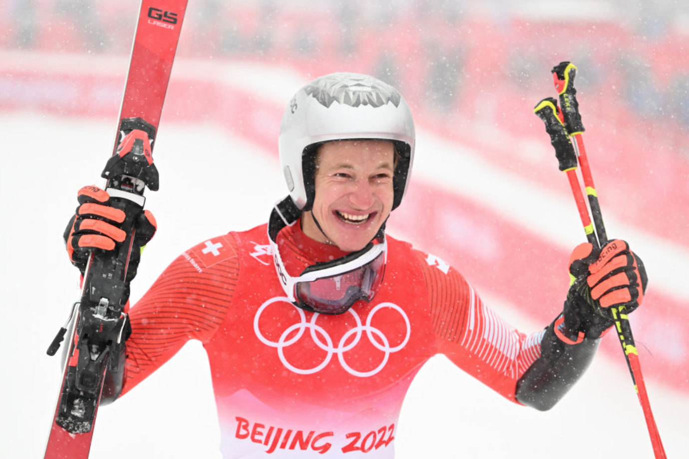2022年2月13日,北京2022年冬奥会高山滑雪男子大回转比赛在延庆国家高山滑雪中心举行,瑞士选手马尔科·奥德马特获得冠军。新华社记者 连振 摄