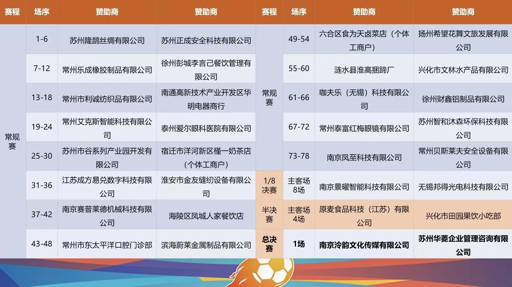 小微企业赞助落位表。