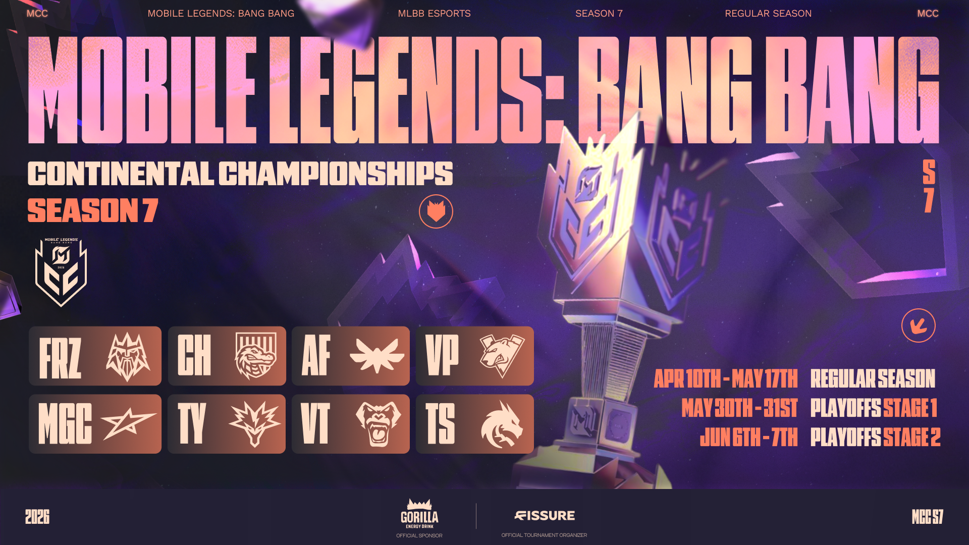 与此同时,《决胜巅峰》东欧中亚赛区联赛(MCC)第7赛季迎来全面升级,全新竞争格局成为最大看点。本赛季共有Team Spirit等8支顶级战队参赛,其中老牌劲旅Team Spirit与Virtus.pro携全新阵容亮相,新贵战队Team Yandex与Aura Farmers强势加入,构成本赛季强劲的竞争矩阵。作为卫冕冠军,Team Spirit旨在捍卫其MLBB电竞史上首支连续斩获六个联赛冠军的统治地位,该队伍曾在M5和M6世界赛中连续跻身前四,本赛季更迎来打野选手Zaur "zaur egoist" Magomadov加盟,进一步巩固优势;老对手Virtus.pro也曾两度斩获联赛亚军,在EWC 25外卡赛中成功突围赢得MSC资格,本赛季通过引入游走位选手Maxim “Nagib” Dudich与打野位选手Sergey “Marl” Finashev完成阵容升级,有望打破Team Spirit的垄断格局。新加入的Team Yandex隶属于该地区最大科技组织之一的电竞部门,Aura Farmers则是从Team Spirit青训体系中脱颖而出,新竞争者们的入局让赛事更具悬念。