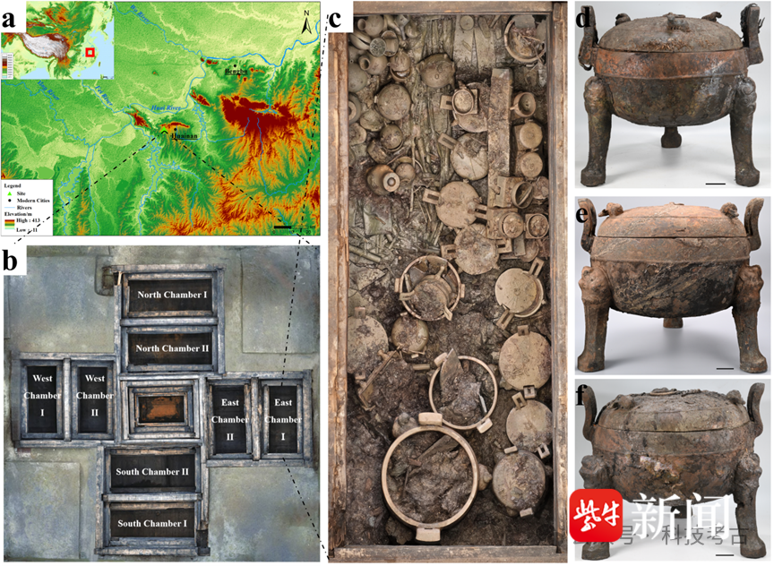 武王墩一号墓的地理位置、结构及东一室出土的青铜鼎。据科技考古微信公众号