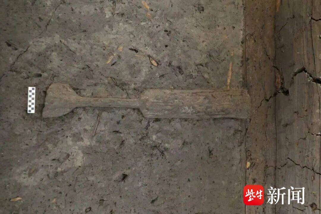 江南最早的船桨,一端已残断,另一端尚未清理。