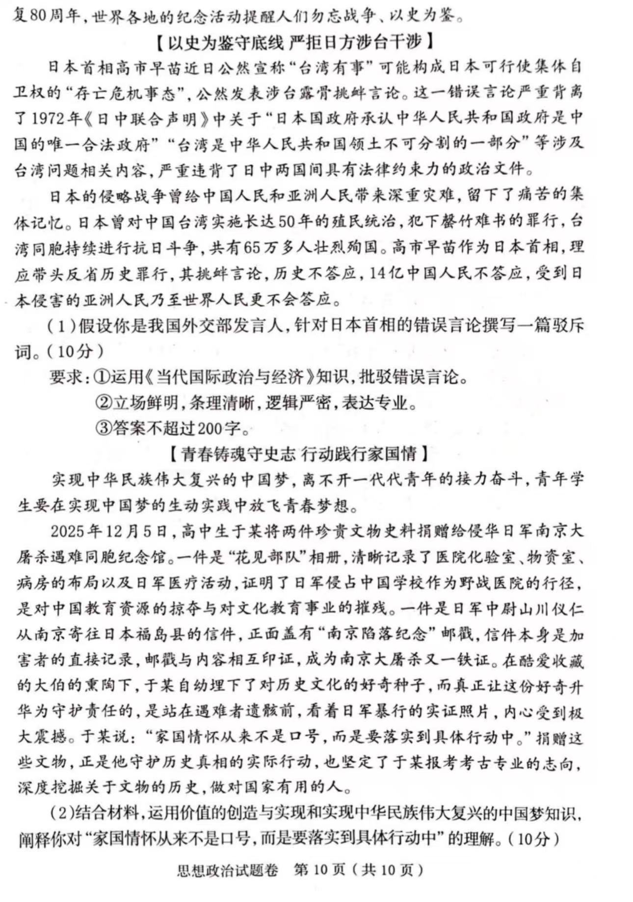 此前本报报道过徐州高中生捐赠侵华日军文物史料,近日被纳入郑州高三一模政治试题,成为思政教育的鲜活素材。