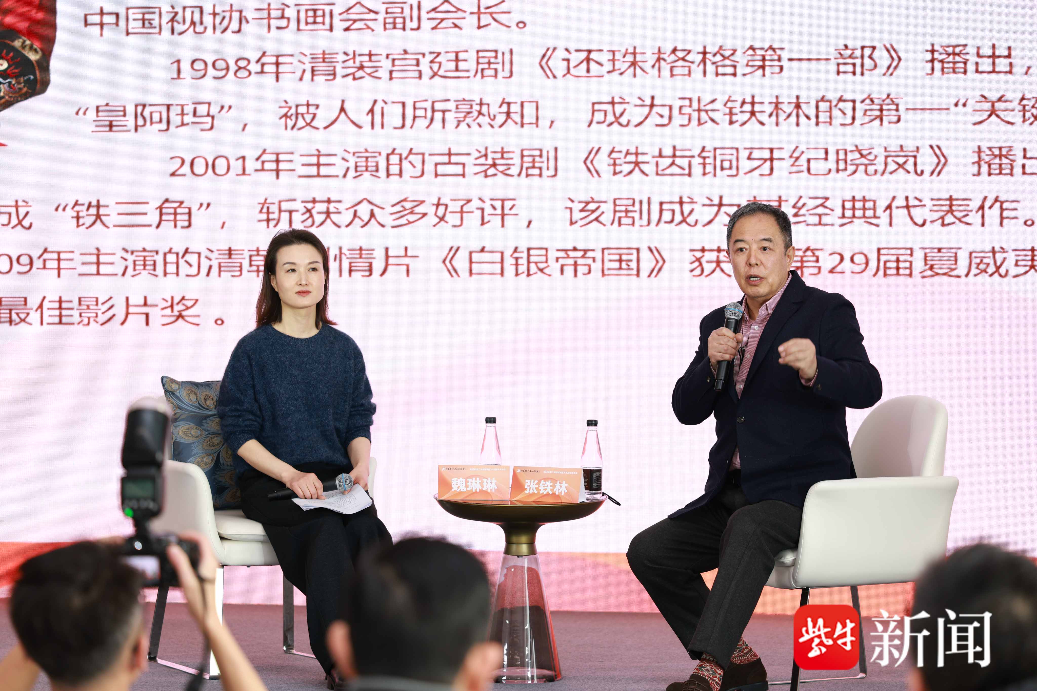 江苏省艺术培训促进会副主席兼秘书长魏琳琳主持分享沙龙环节。著名影视表演艺术家、书画家、暨南大学艺术学院首任院长张铁林先生作为特邀嘉宾,以《艺术与人生》为题,为现场观众带来了一场触动心灵的分享。