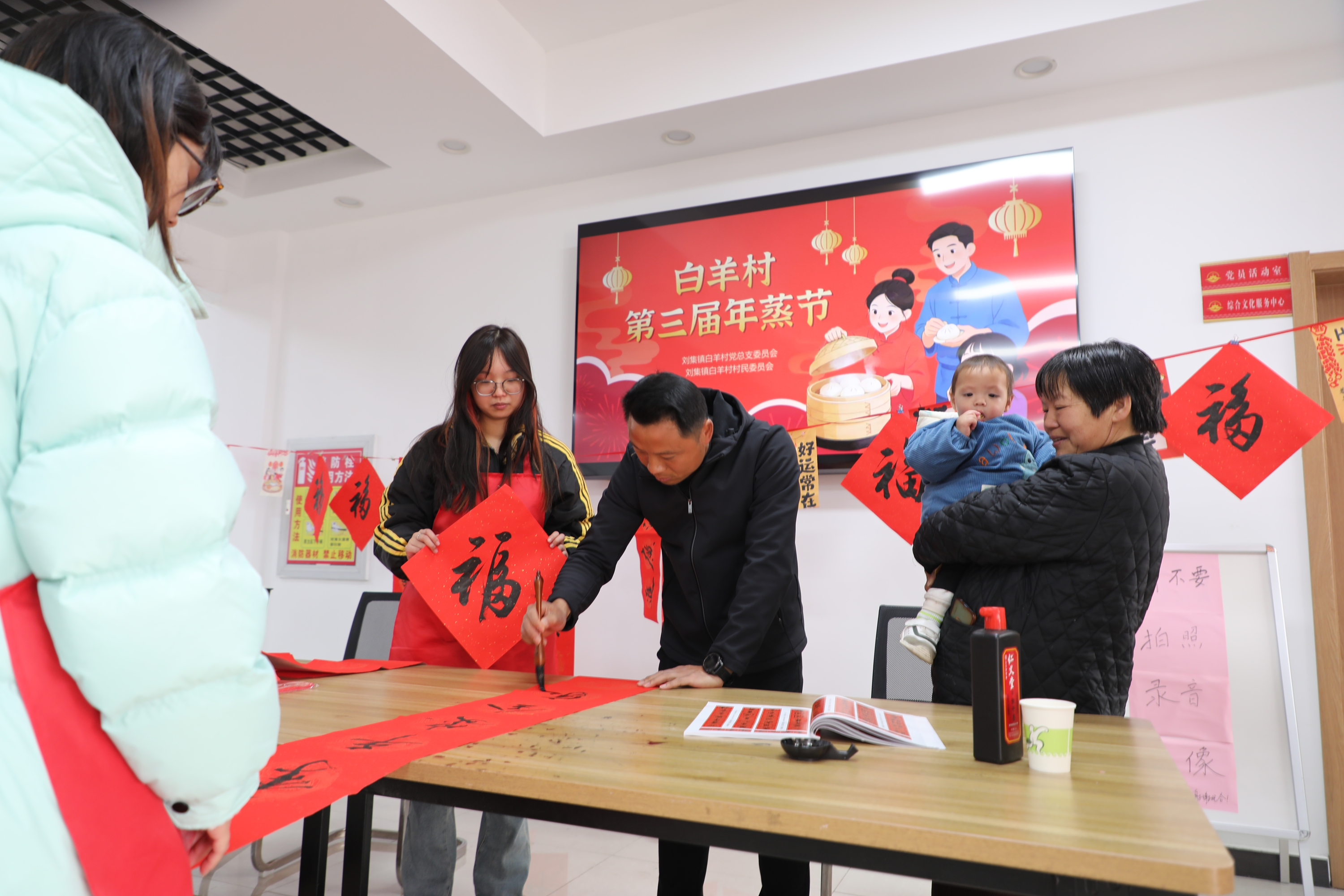 送春联志愿服务同步开展,年味大集同样热闹非凡,腊味、炒货、赤松茸等本地农特产品琳琅满目。村民们一边品尝刚出锅的热乎面点,一边挑选年货,大家纷纷表示,看舞龙、听大戏、蒸面点、逛市集,这份热闹比丰盛佳肴更让人开心。