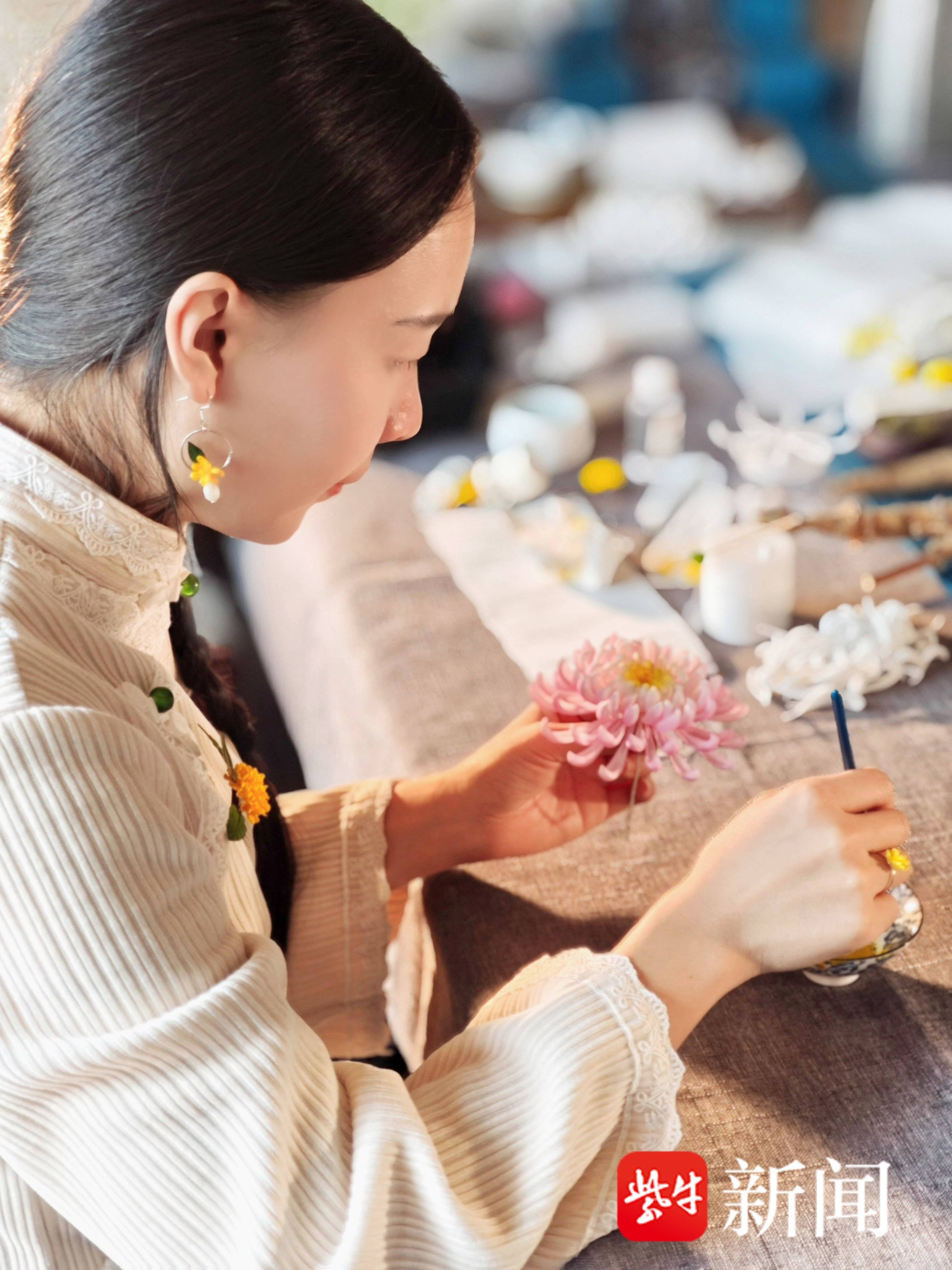 扬州传统通草花多以菊花、梅花、牡丹等为创作主体,此次 “十二花神” 却涵盖杏花、石榴花、蜀葵等不常制作的品种。“我常年收集花卉模板,如今已攒下数百款,这次的花卉都有现成模板可用。”为贴合节目古典意境,朱欣还翻阅海量古画,“刘钧面前的杏花插花,就是参考古画设计而成,力求还原宋人笔下的雅致。”