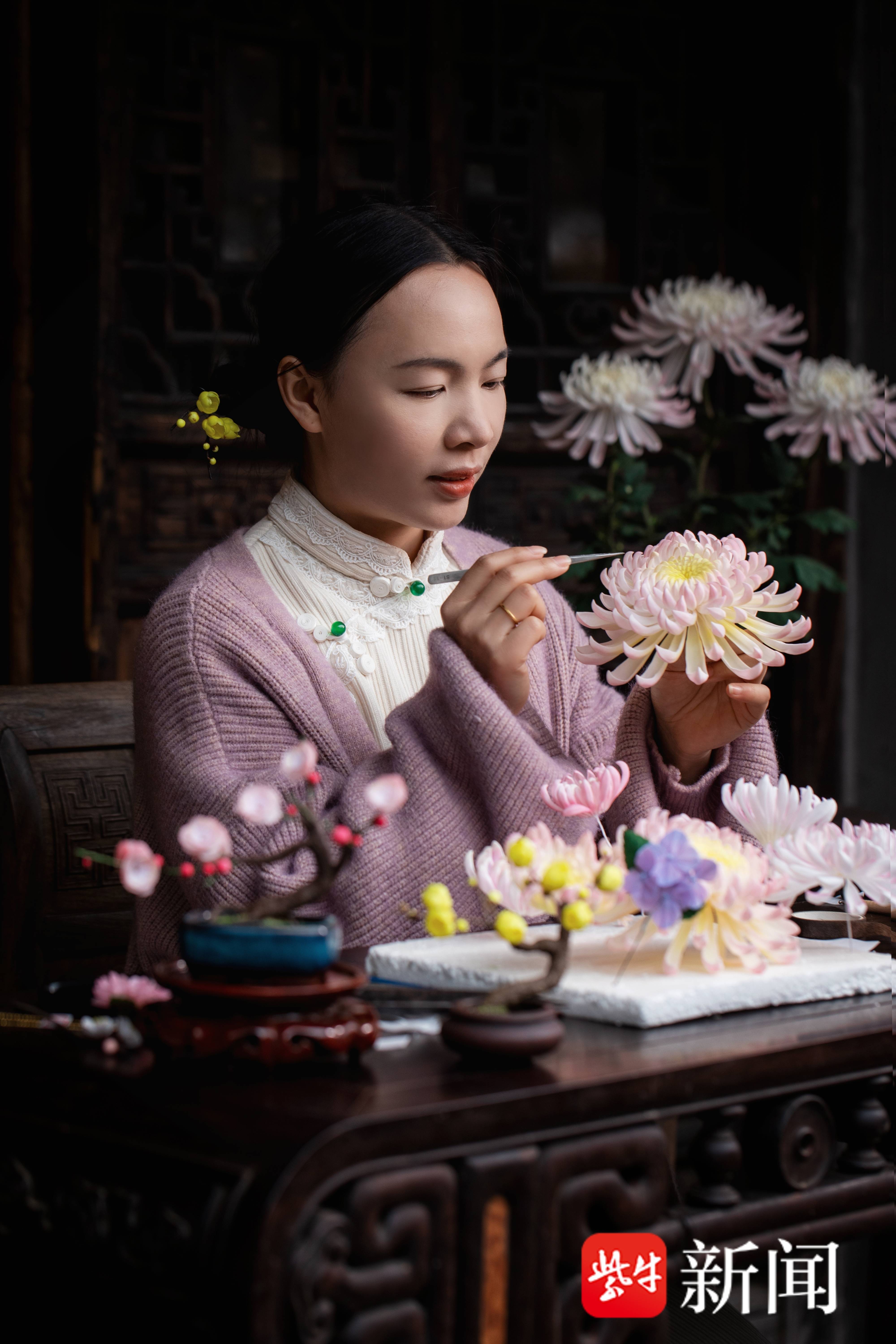 初到扬州,朱欣住进几十元的小旅馆,每天清晨不到八点就赶到戴春富的工作室学艺。光是练习通草花瓣的弧度,她就练了整整两个月。湿毛巾敷软通草纸,捏、揉、剪后用白乳胶粘连,日复一日的重复动作枯燥乏味,回到住处,她仍要练到深夜。“但做自己喜欢的事,哪怕每天工作十多个小时,也觉得开心。”