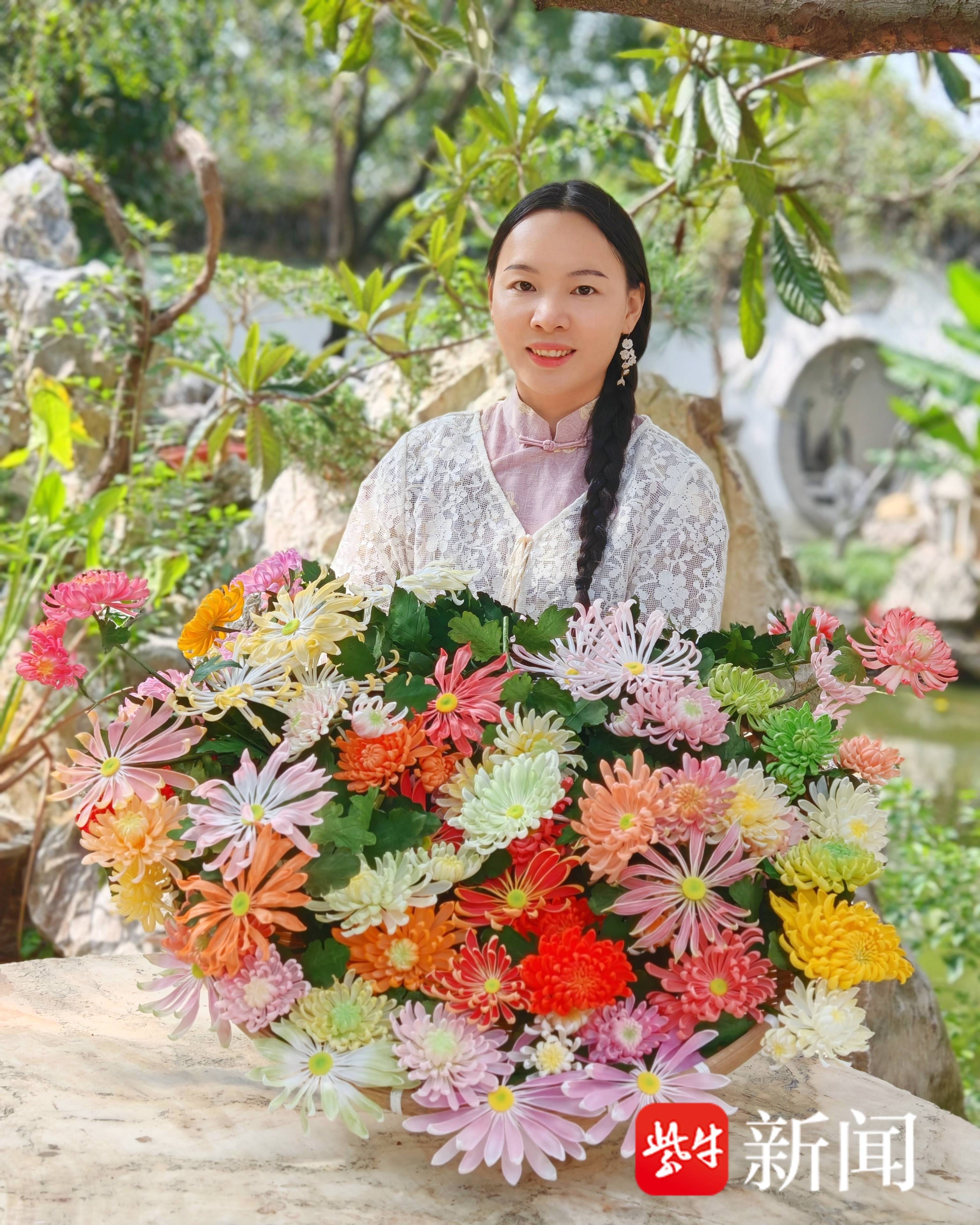 “传承非遗,师父领进门,创新才能走远路。”朱欣公公周善生的这句话,成了她的创作信条。师父戴春富将菊花盆景做到极致,朱欣则不断拓宽通草花的 “花花世界”。她带领团队攻克了通草花易碎、遇水变形的技术短板,“曾为奶茶品牌广告片制作不怕水的通草花,就是技术创新的成果。”