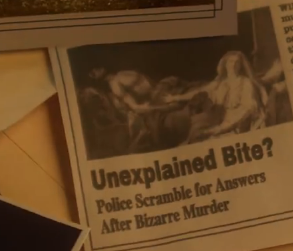 缠绕在水中的奥菲利亚脚上的藤蔓随着镜头的切换来到了古斯塔夫·克里姆特的名画《吻》,不同的是原画中的青年男子变成了青面獠牙的吸血鬼。